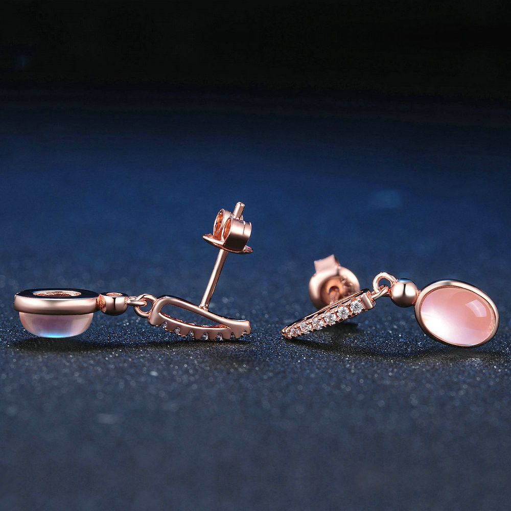 Natural pink crystal hibiscus stone micro inlaid earrings