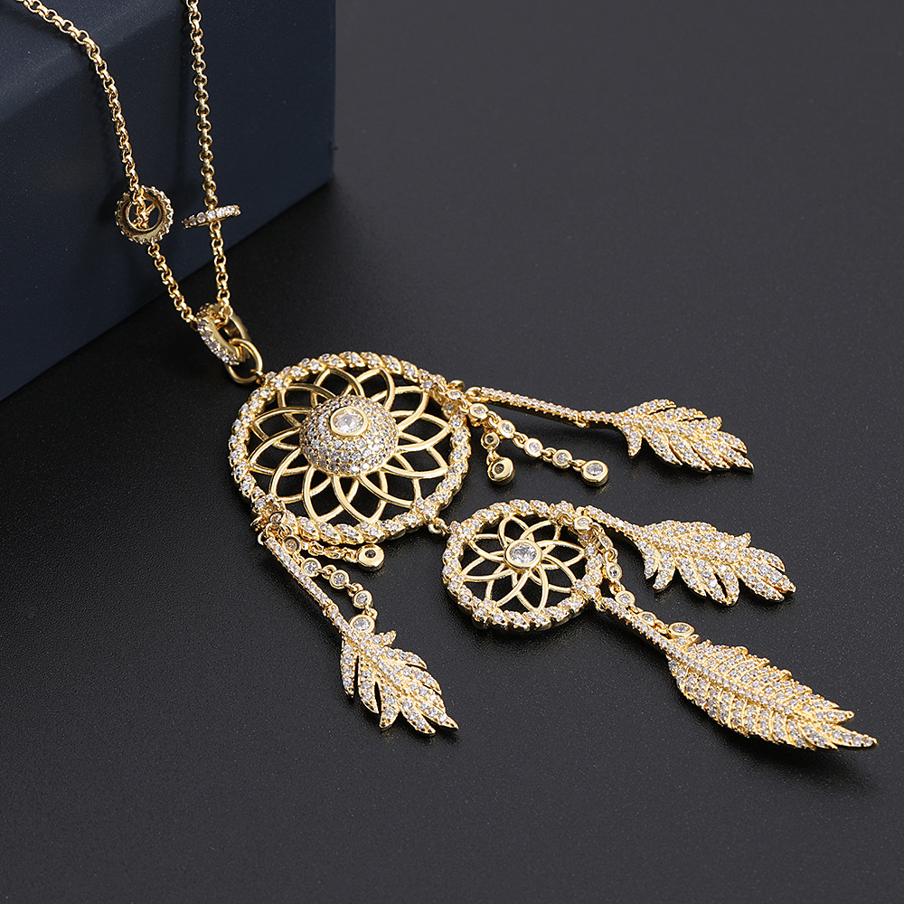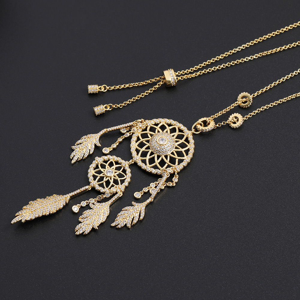Material: CopperTreatment process: diamond inlayType: necklace and PendantStyle: WomenModel: Dream CatcherChain styles: bead chainsExtension chain: less than 10cmPendant material: CopperPerimeter: 21cm (included) - 50cm (included)