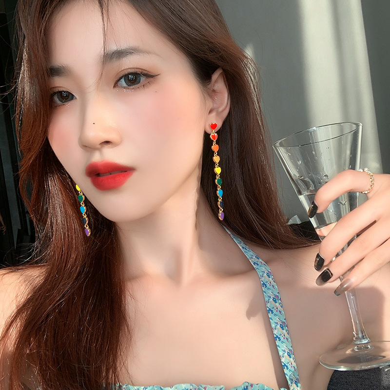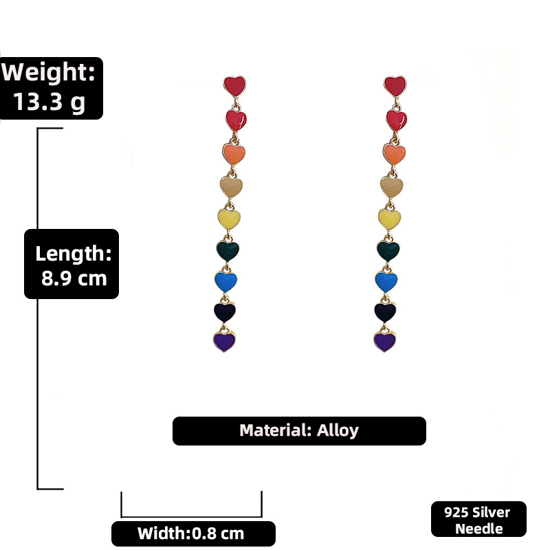 Product information:Material: alloyStyle: Women'sShape: Heart shapeTreatment process: dripping oilColor: Silver Needle-Color Love Earrings, Product Information in Chinese, Product Information in EnglishPacking list: