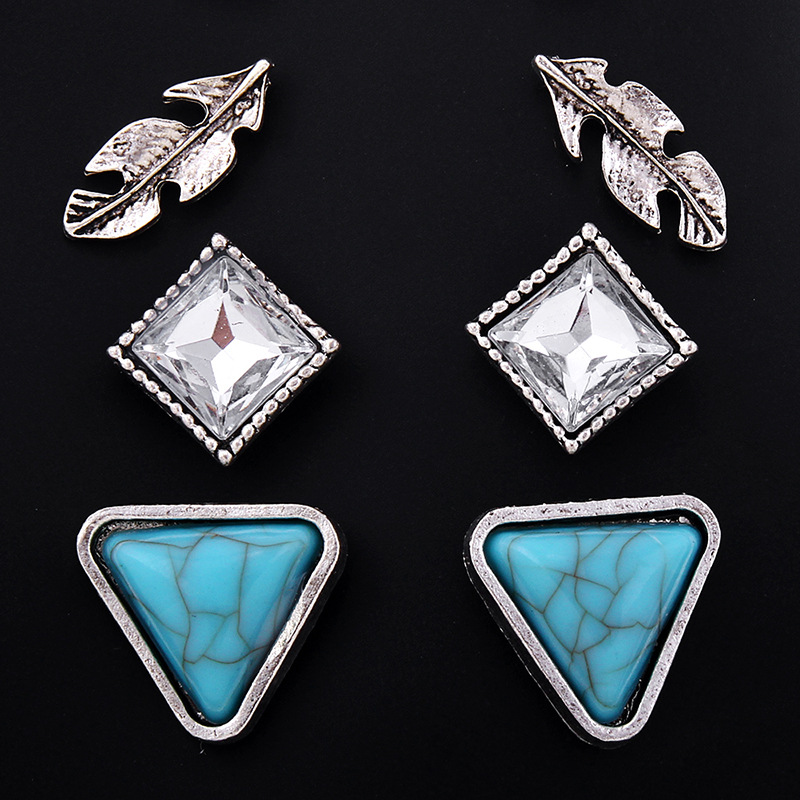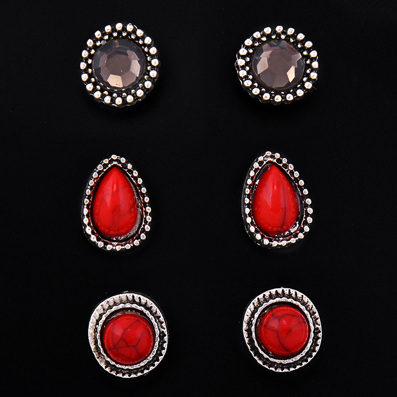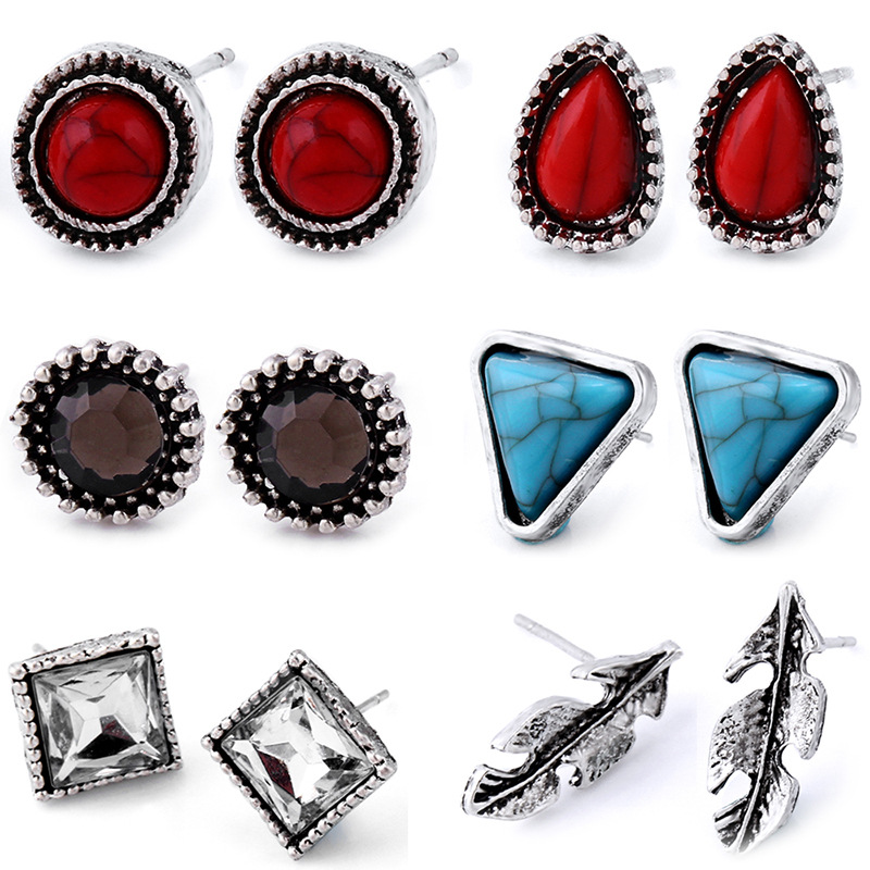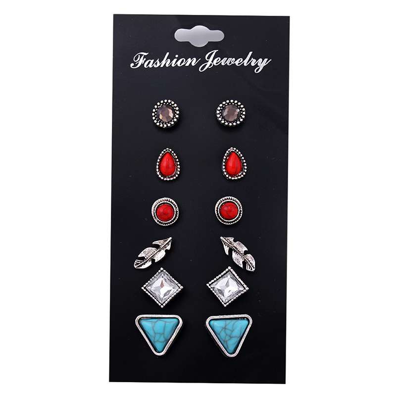 Color: red and blue turquoise 6 pairs of studs silver base 4767-J2402Product Material: Alloy Natural Stone