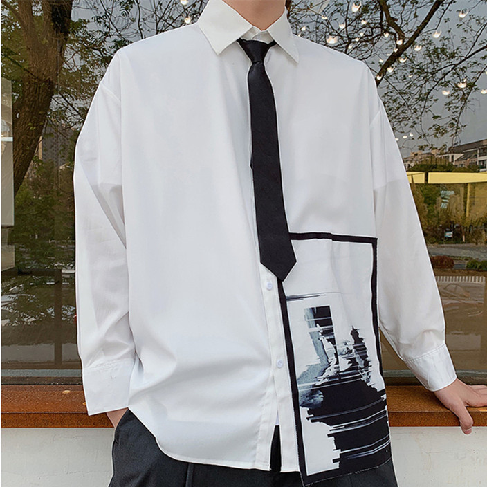 Product information :Color: white and blackClothing style details: printed decorative loop patchSleeve length: long sleevesVersion: loose typeSize Information:Size: M L XL 2XLPacking list:Shirt *1