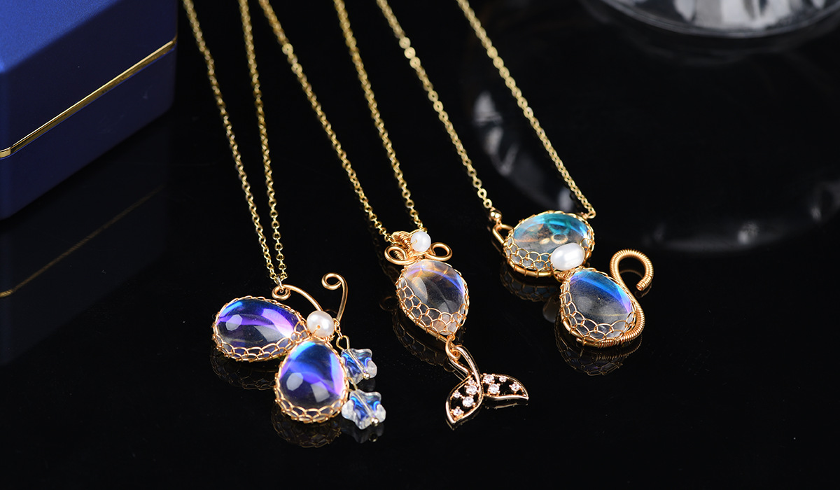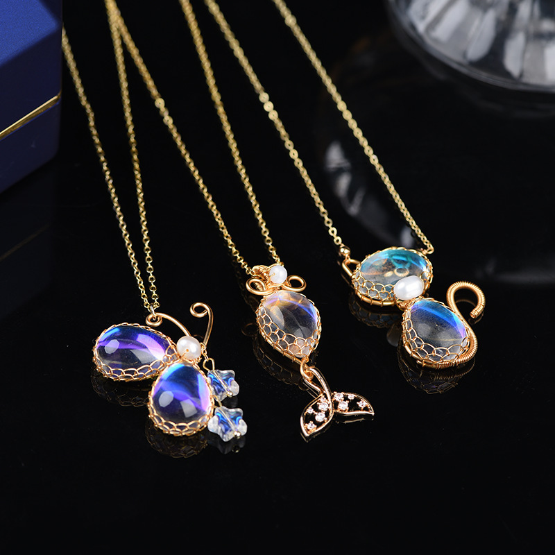 Egg White Moonstone Hand-wrapped Wrapped Silk Butterfly Kitten
