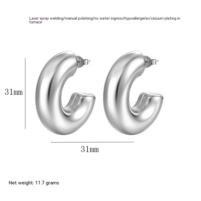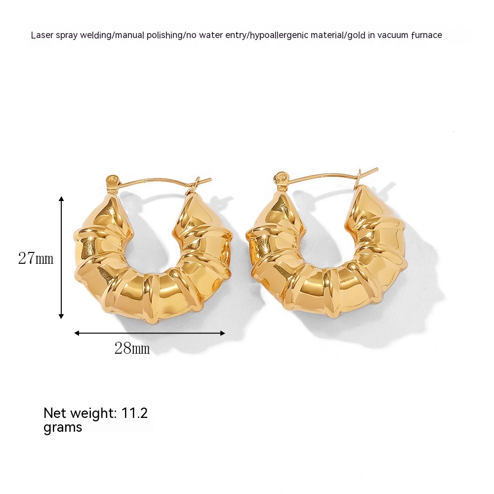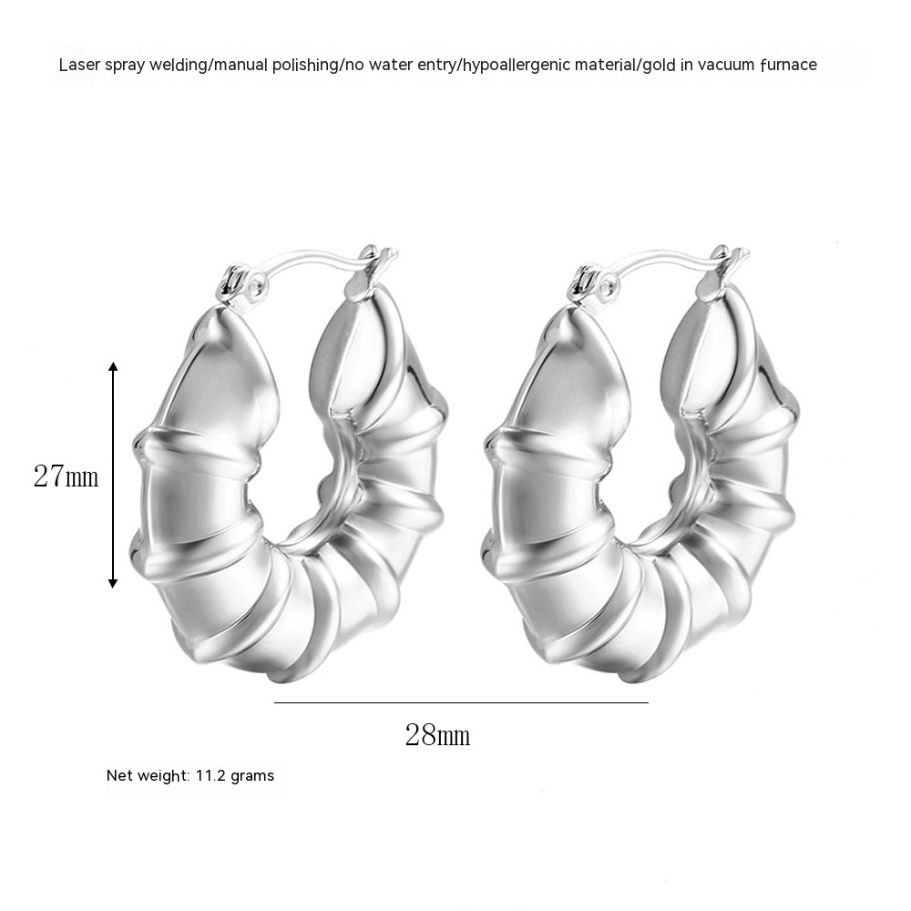 Women's Fashion Hollow Stainless Steel Horn Glossy Earrings