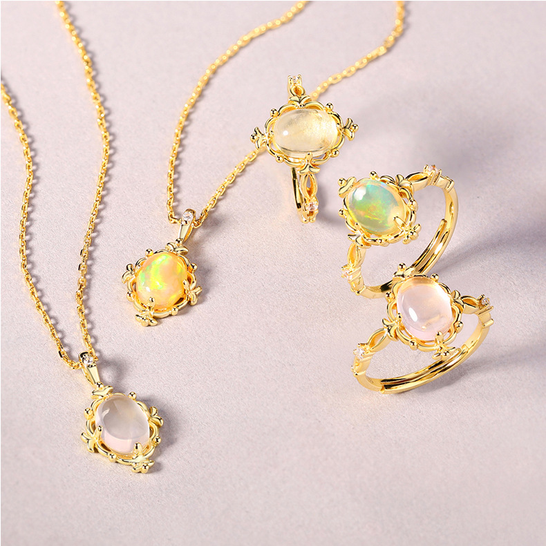 Main stone: natural pink crystal, lemon crystal, opal egg shape 6*8MM