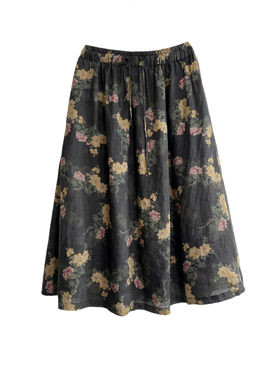 Color: black background with pattern, dark khaki background flower, pink purple pattern, cameo red, warm orange flower