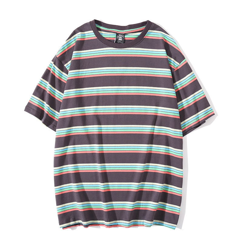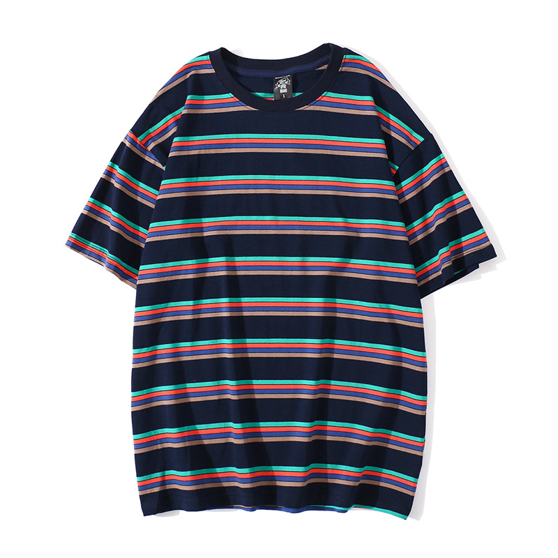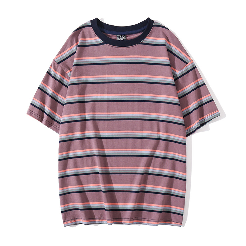 Simple striped loose short sleeve couple T-shirt