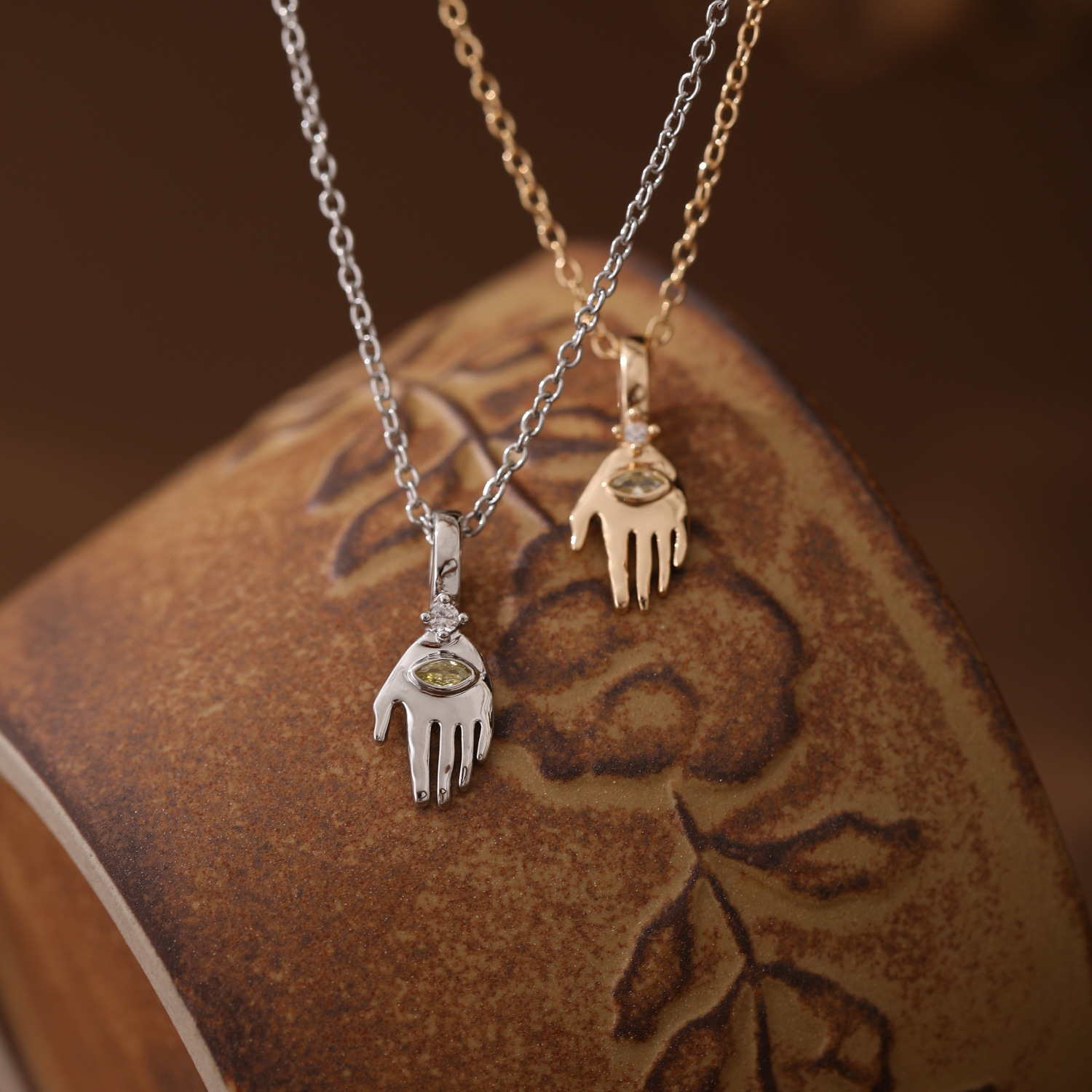Product information:Color: Palm (golden), Palm (silver), eyes (golden), eyes (Silver) Material: Stainless steel Popular elements: eyes, chains Style: Simple