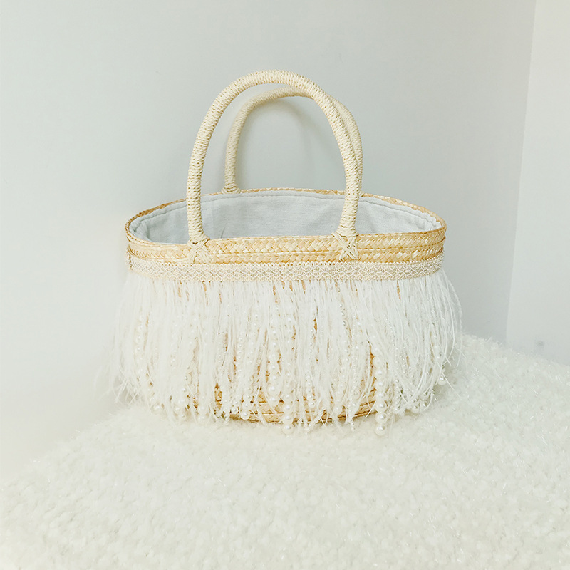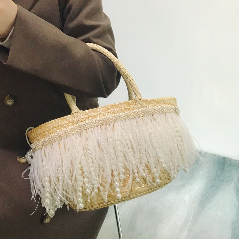 Product information:Style: fresh and sweetSupply category: spotMaterial: StrawBag size: smallPopular elements: pearlsLining texture: polyester cottonPacking list: