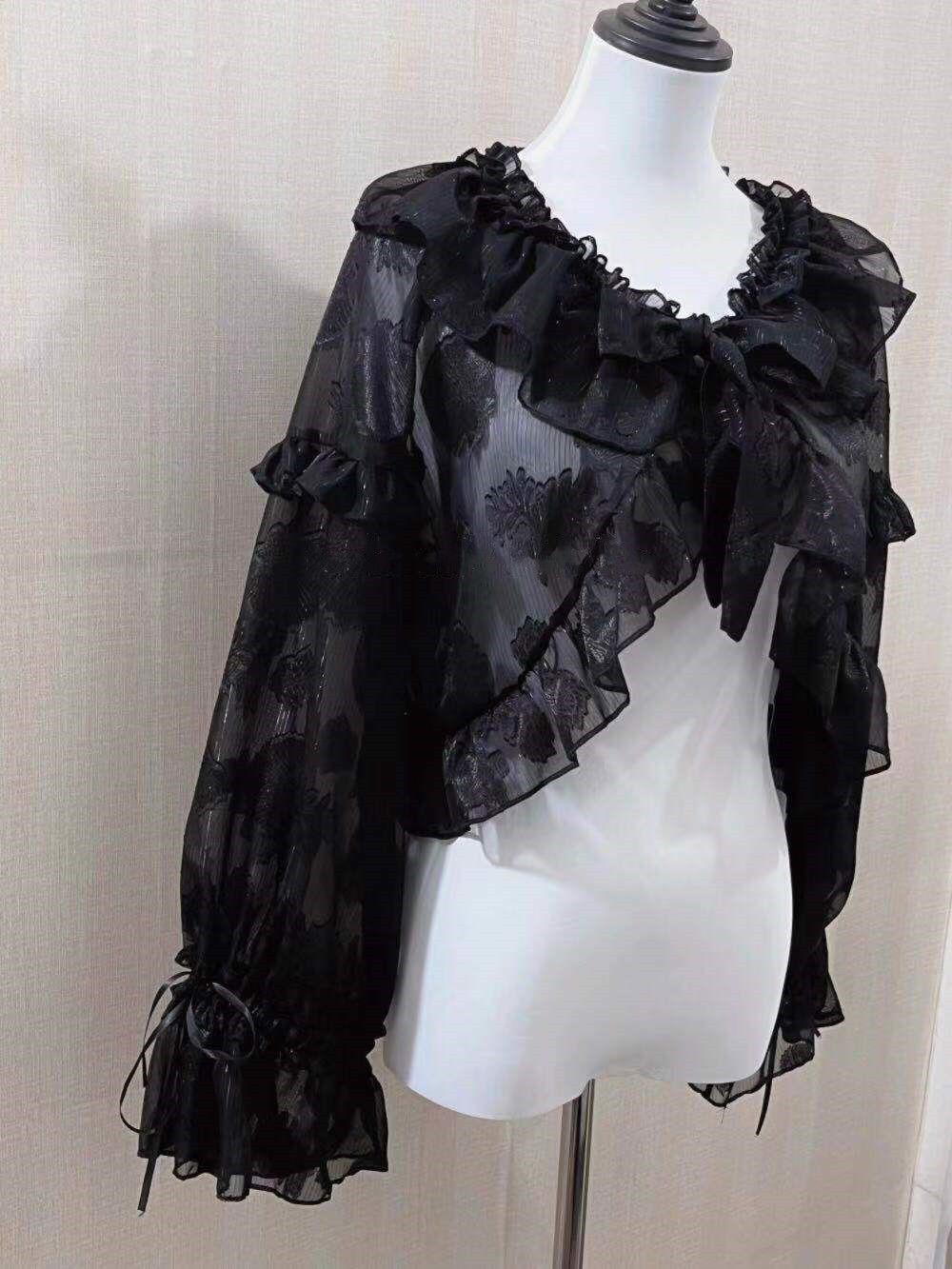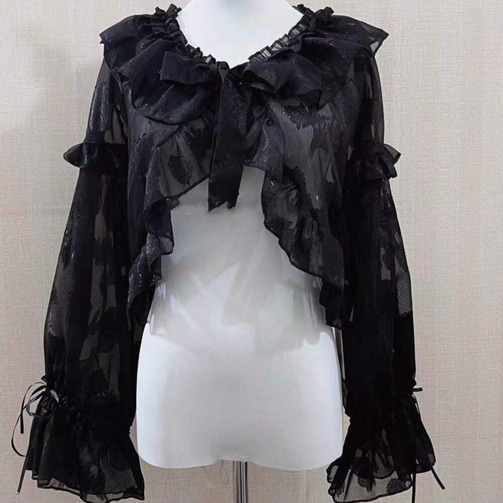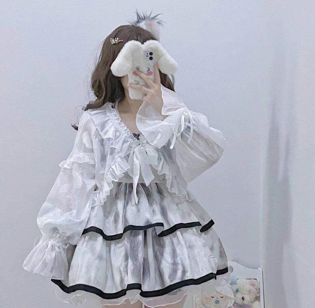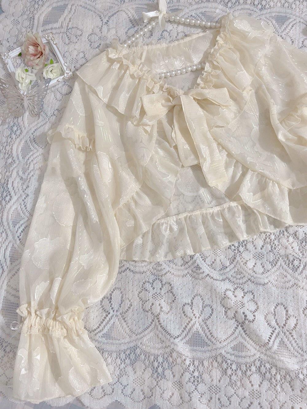 Details of clothing style: Bow, ruffled