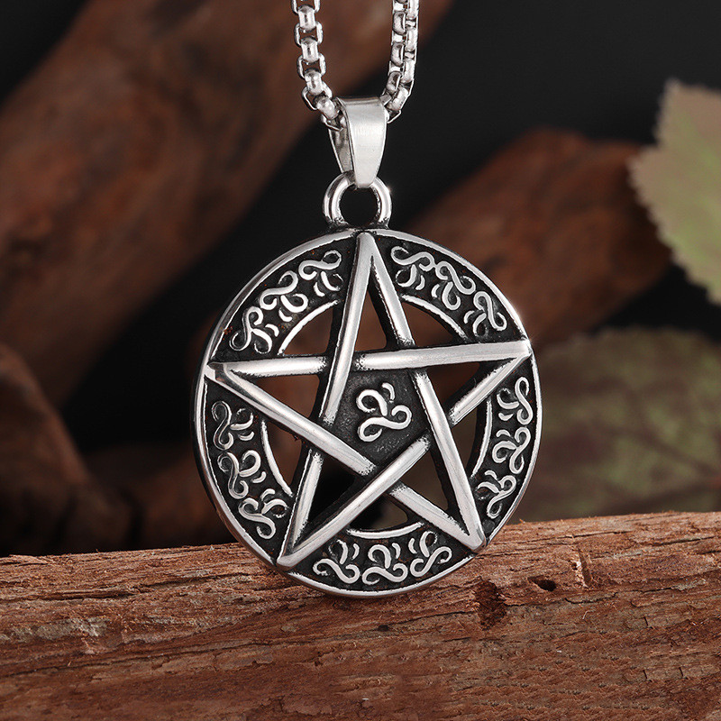 Color: hexagonal star round necklace-steel color