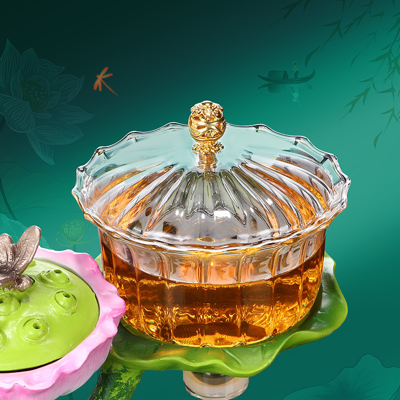 Product information:Color: Lotus Pond Moonlight vertical pattern petals tea making device Material: heat-resistant glass With or Without with tea tray: None Function: heat resistance, filtration Style: creative style