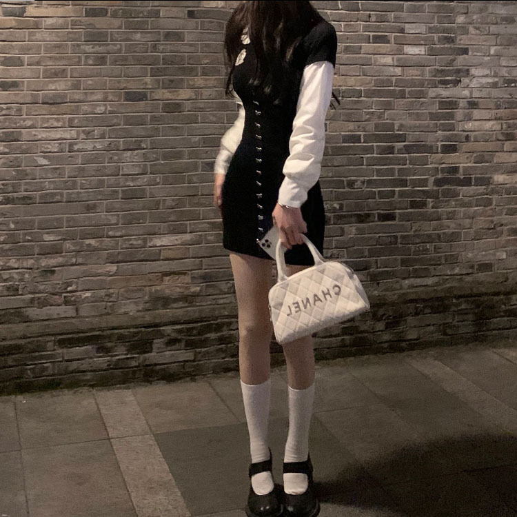 Color: fake two-piece little black dress