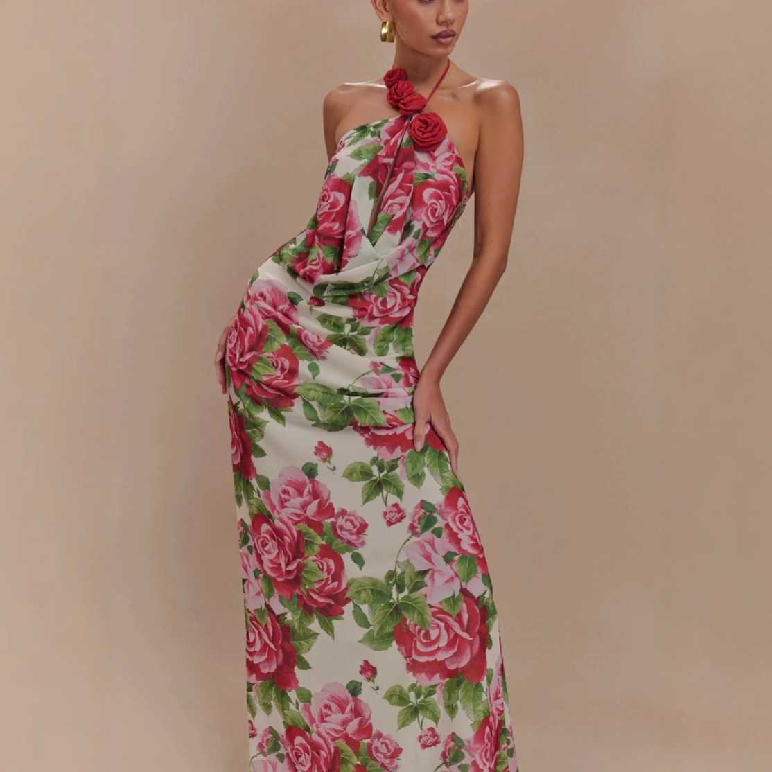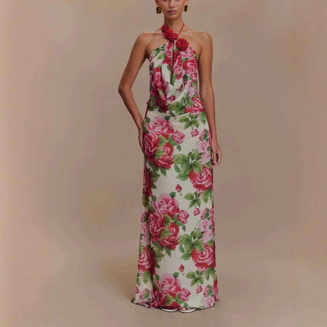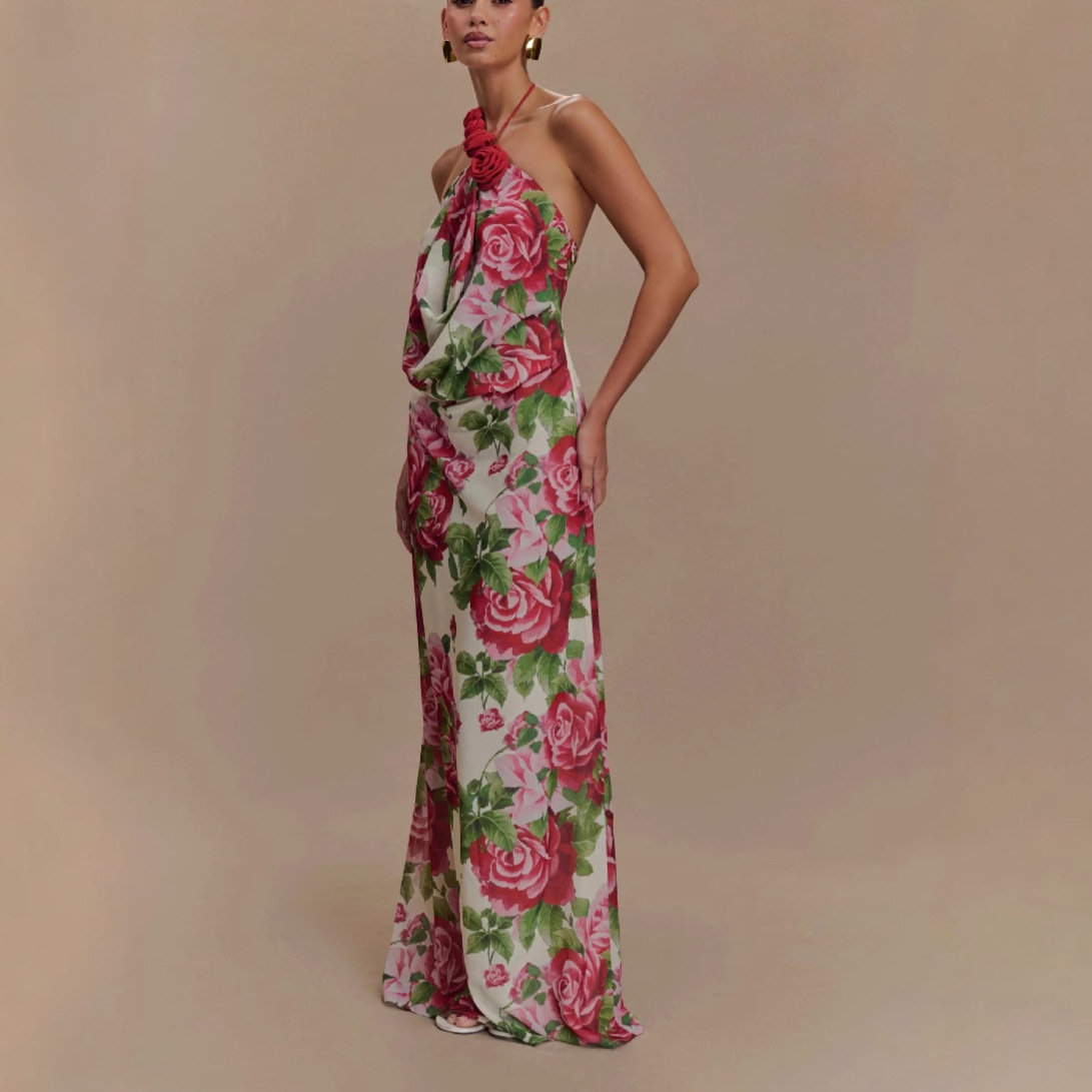 Women's Printing Halter Backless Dress