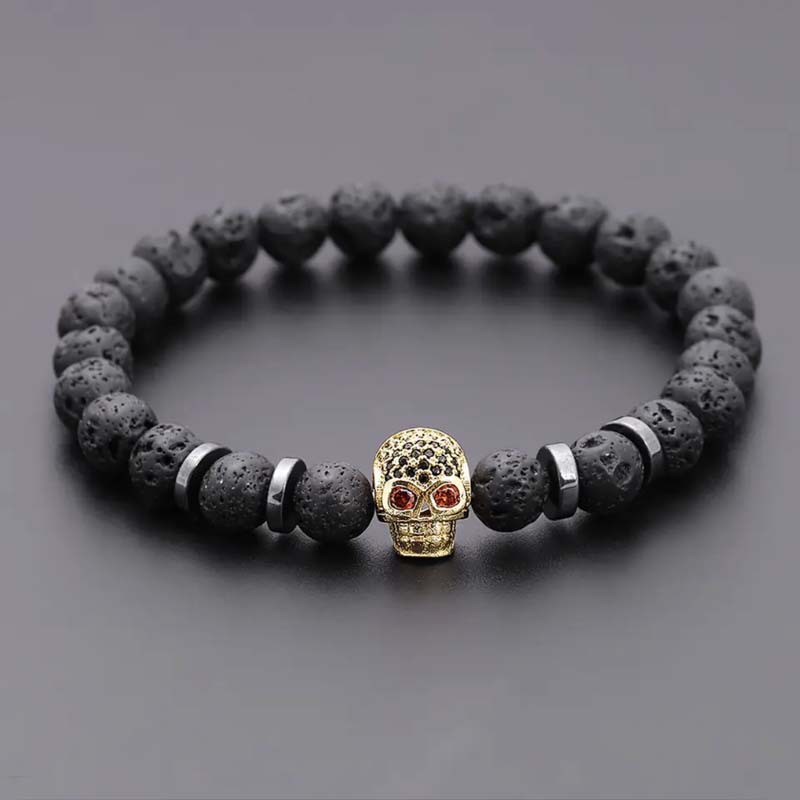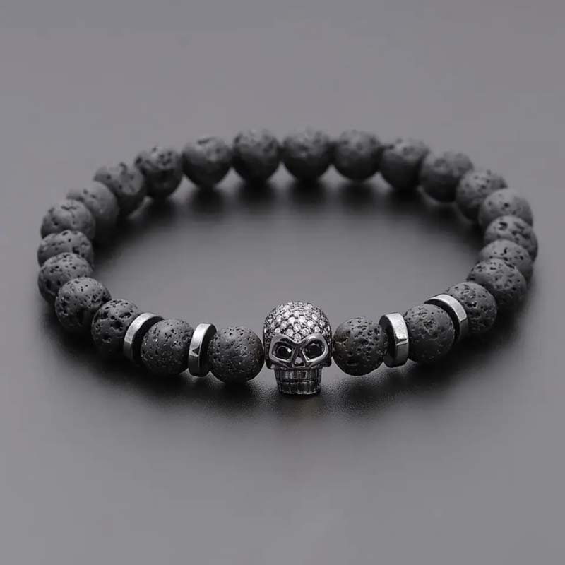 Natural Stone Volcanic Rock Beaded Bracelet Micro Inlaid Zircon