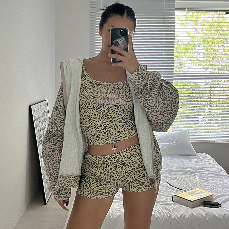 Color: gray three-piece set, white three-piece set, skin color three-piece set, black three-piece set, camouflage three-piece set, leopard print three-piece set