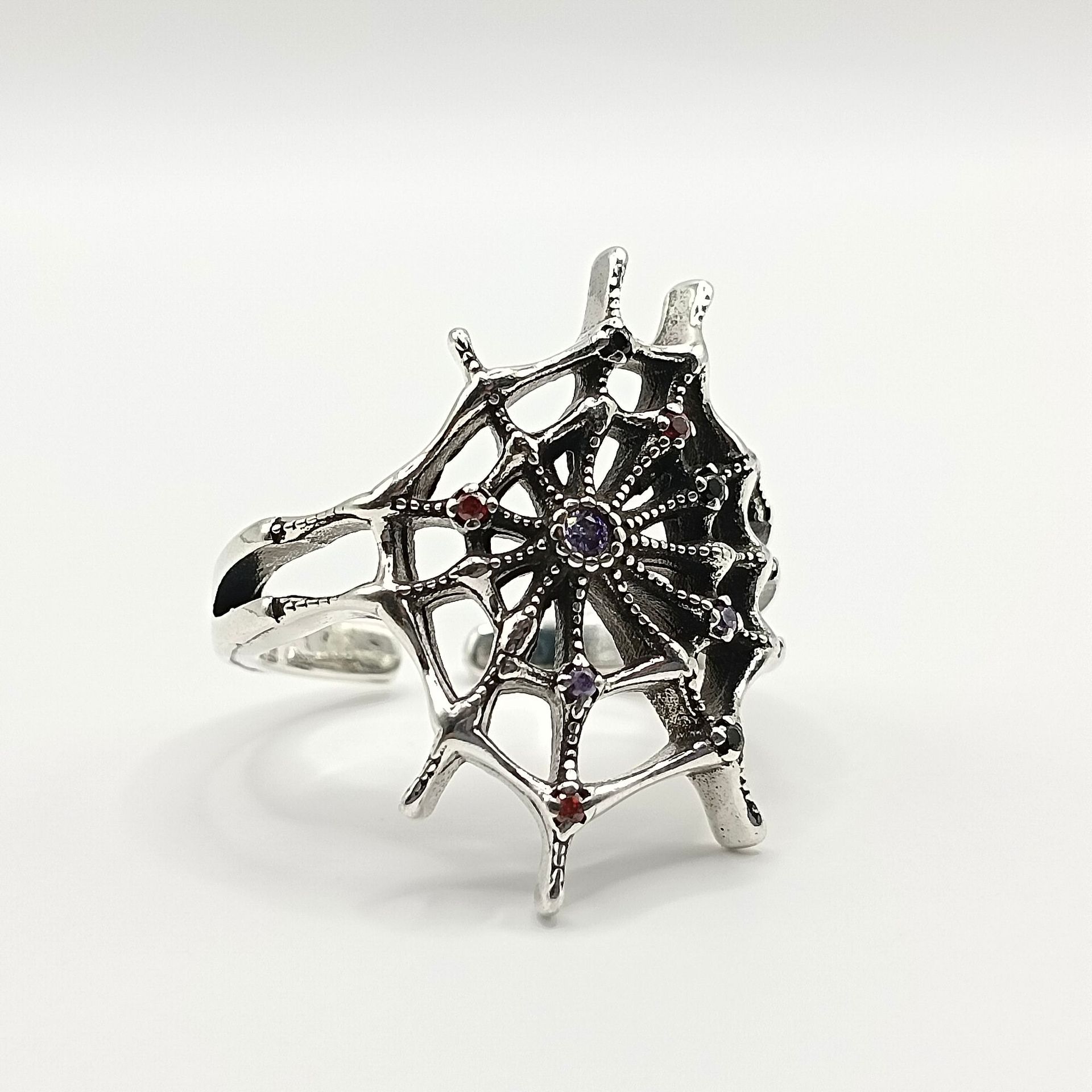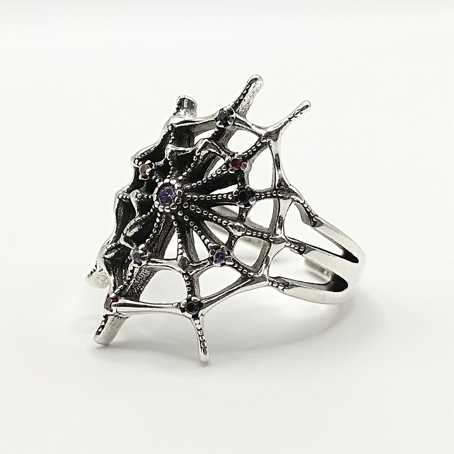 Product information:Type: open mouth Color: TJ-2204 "spider web" ring Size: adjustable opening (ring gem height 27mmx width mm) Style: Unisex Material: Copper Style: National style