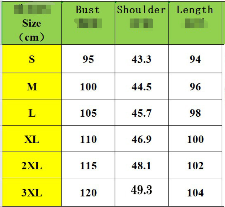 Size: S, M, L, XL, 2XL, 3XL unit: cm