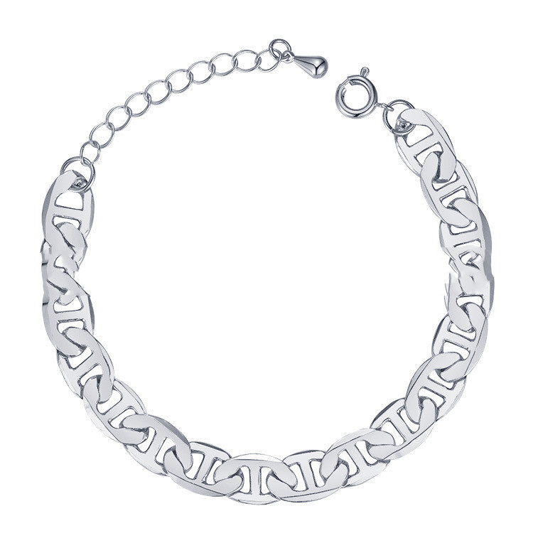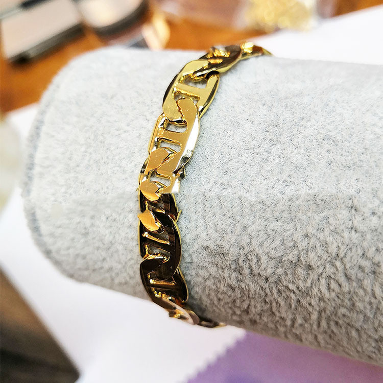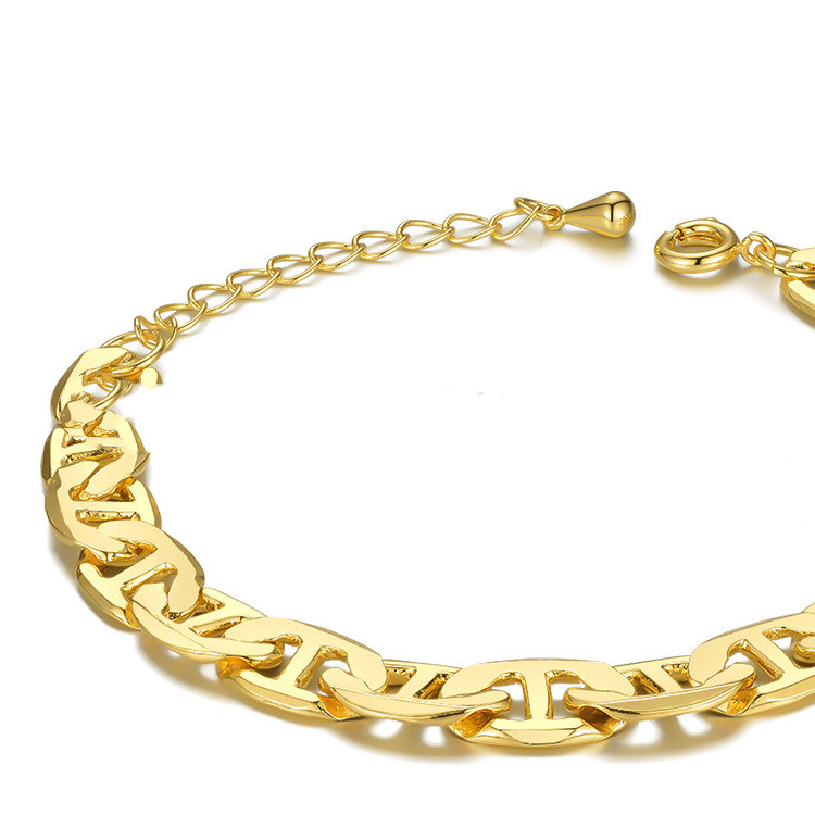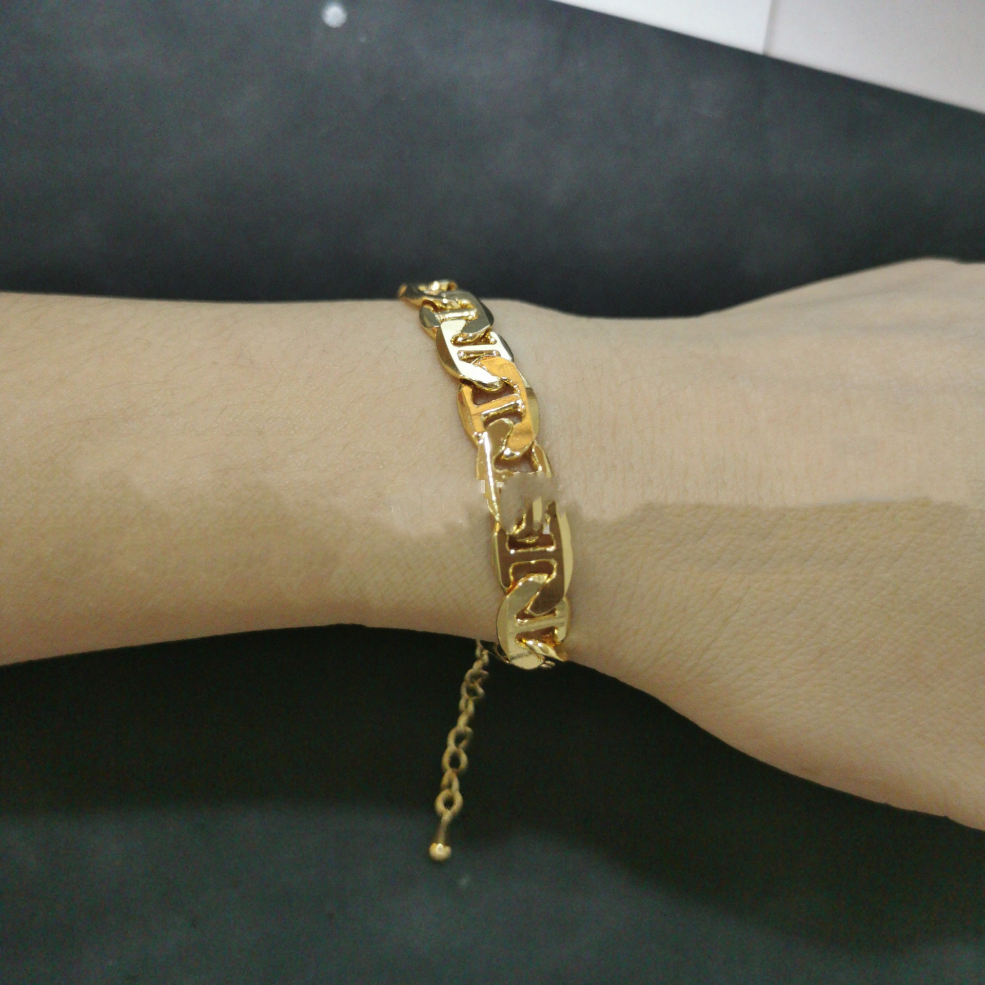 Product information:Material: environmental protection copperTreatment process: vacuum plating 18K goldStyle: Flat Japanese character chain braceletSize: 16+4cmWeight: N.W. 12g/pcColor: gold, silver