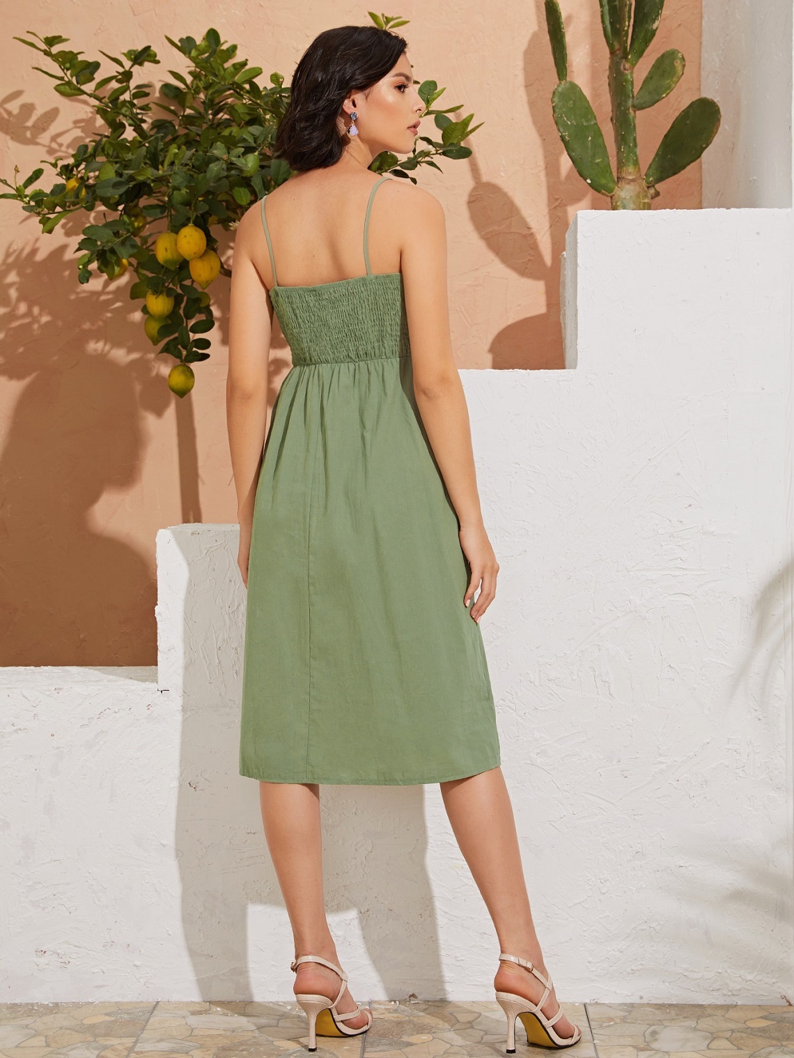 Product information: Color: Army Green Waist Type: Mid waist Size: S,M,L,XL Main fabric composition: Cotton Sleeve length: sleeveless Skirt Category: Dress