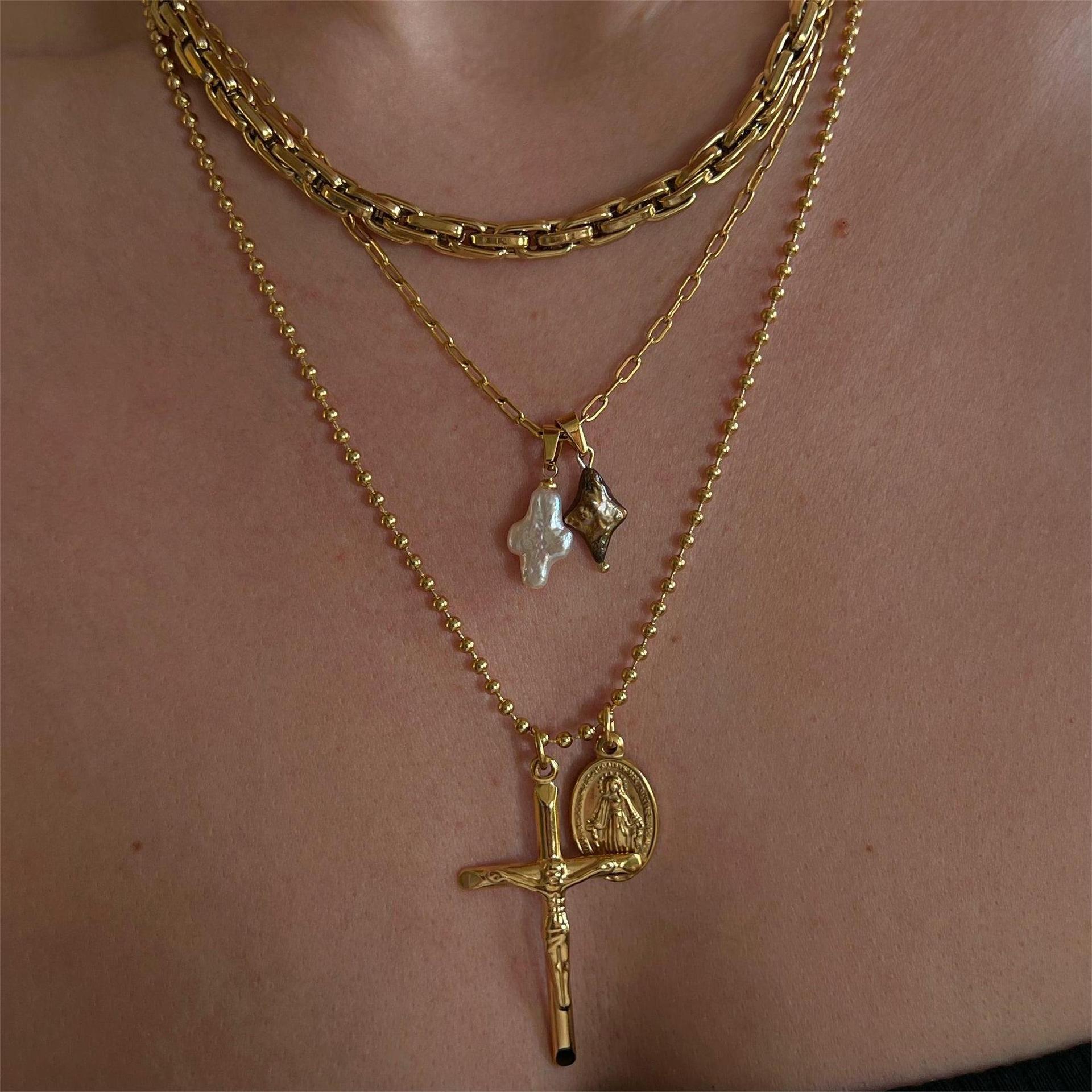 Product information:Treatment Process: ElectroplatingColor: WhitePendant material: Mother Pearl shellfishChain style: cross chainMaterial: titanium steelShape: GeometricPopular elements: IrregularStyle: affordable luxury style