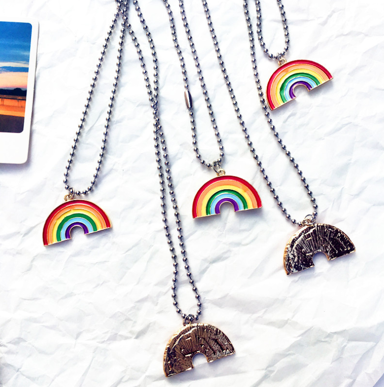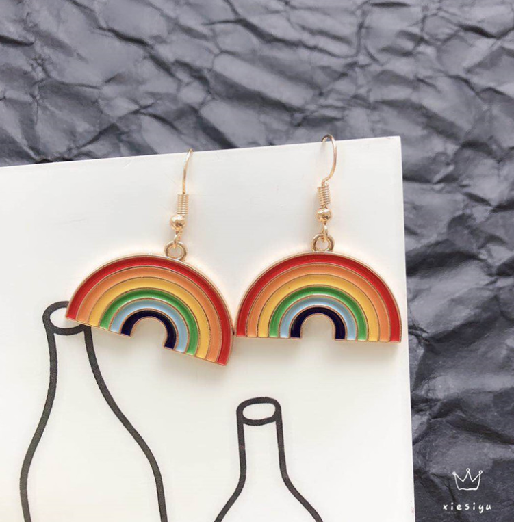Color: Alloy Rainbow Necklace 60cm, Alloy Rainbow Ear Hook, Alloy Rainbow Ear Clip, Alloy Rainbow Bracelet 17cm