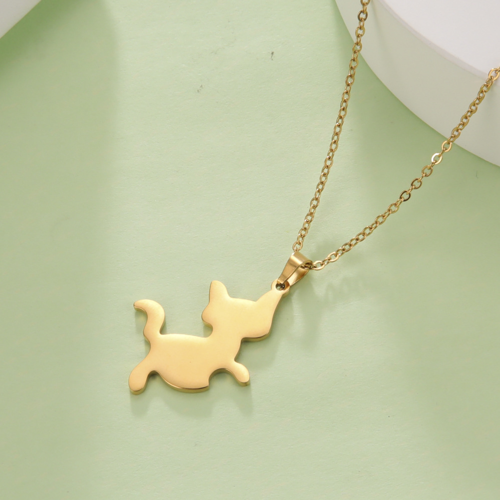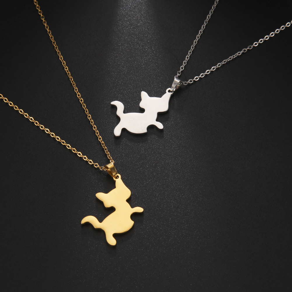 Product information:Color: steel, gold Applicable people: Unisex Style: necklace Chain style: cross chain Material: Stainless steel Popular elements: Cat