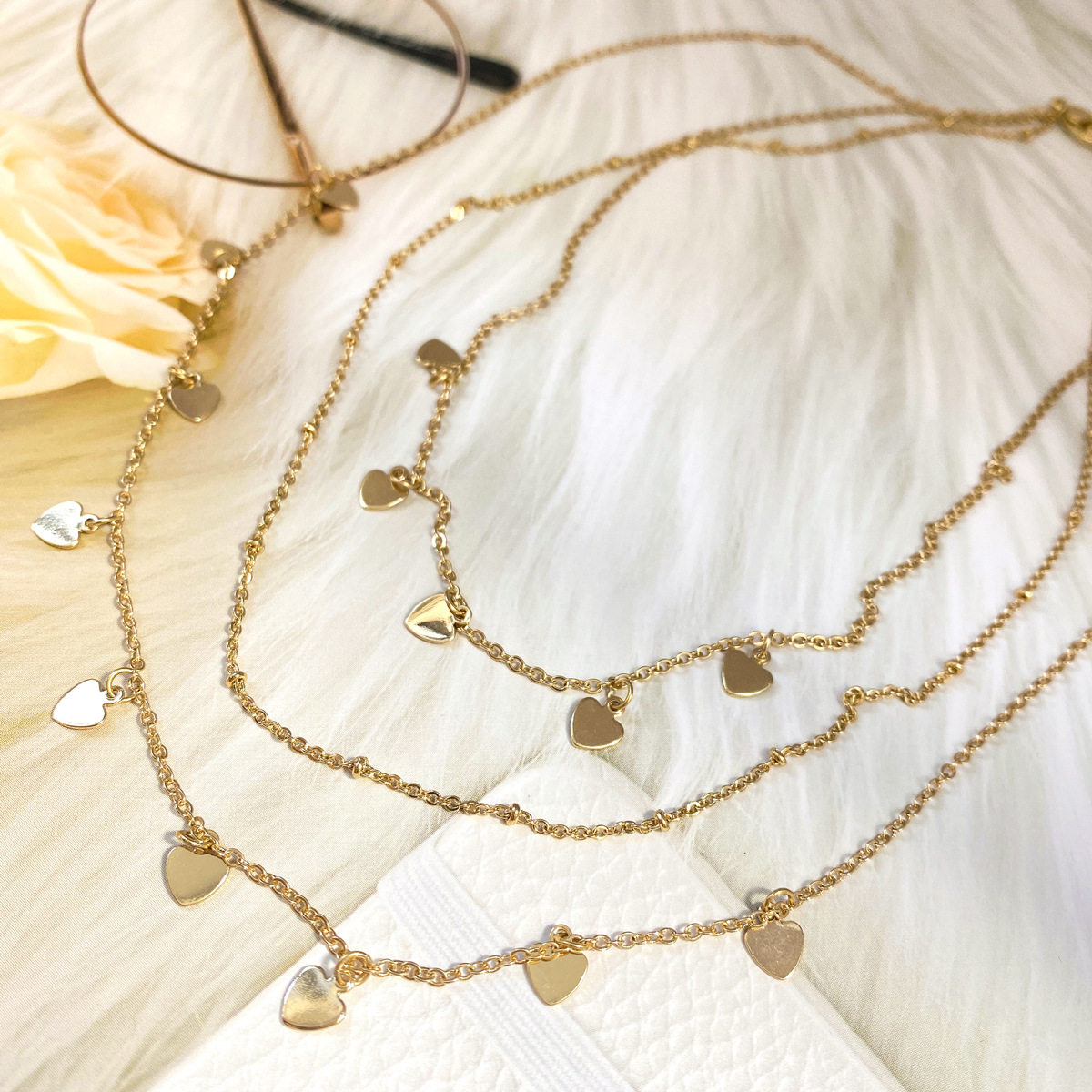 Women's Fashion Love Heart Simplicity Three-layer Twin Sequined Necklace