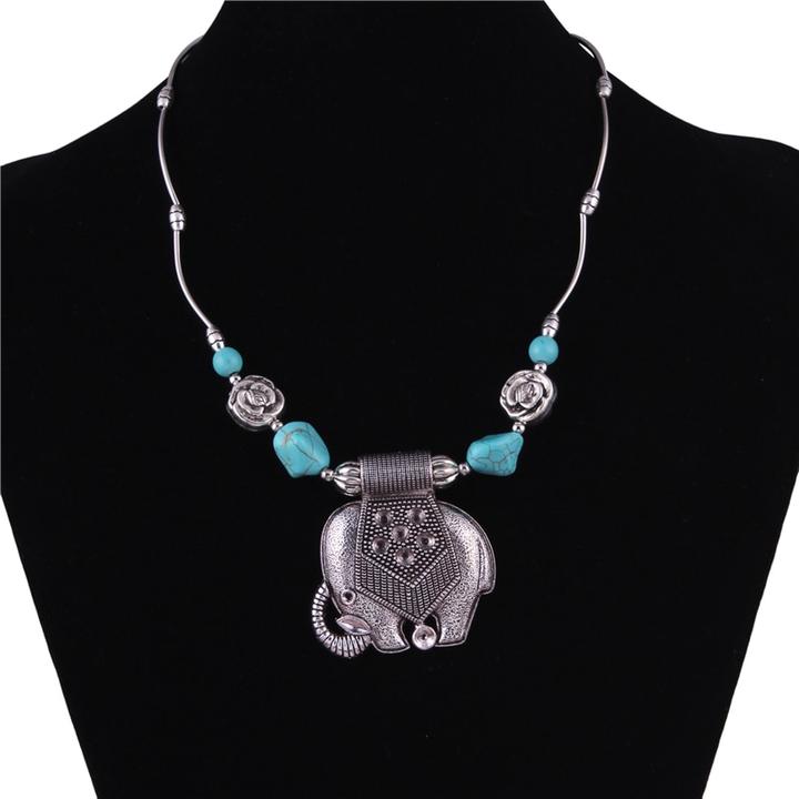 Item Type: NecklaceShape\pattern: ElephantMetals Type: Zinc AlloyPendant Size: 62*48mmStyle: BohemiaMaterial: Semi-precious StoneChain Type: Link ChainFeature: High QualityLength: 400+50mm