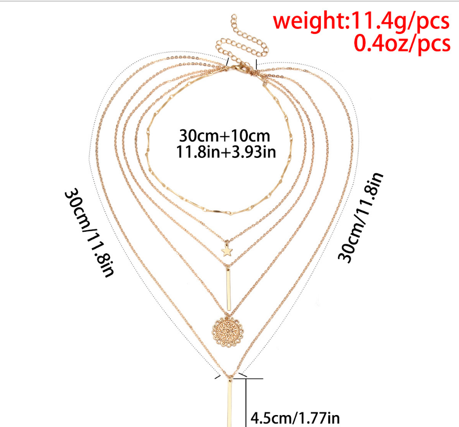 Retro Multi-Element Set Item Decoration Five-pointed Star Metal Rod Sun Flower Combination Necklace