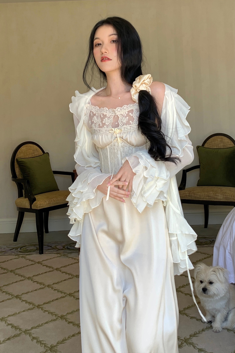 Color Classification: Mother-of-Pearl Sling Dress, Lace Girdle, Wave Sleeve Cardigan, Mother-of-Pearl Sling Dress, Spot Sleeve Type: Trumpet Sleeve