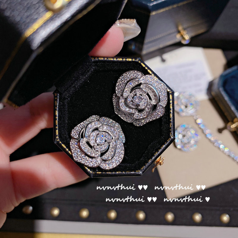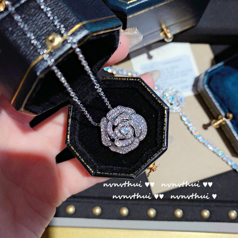 A: Sparkling Flower Gemstone Necklace, 18K White Gold Plated Camellia Luxury Zircon Full Rhinestone Clavicle Chain Necklace Pendant,
