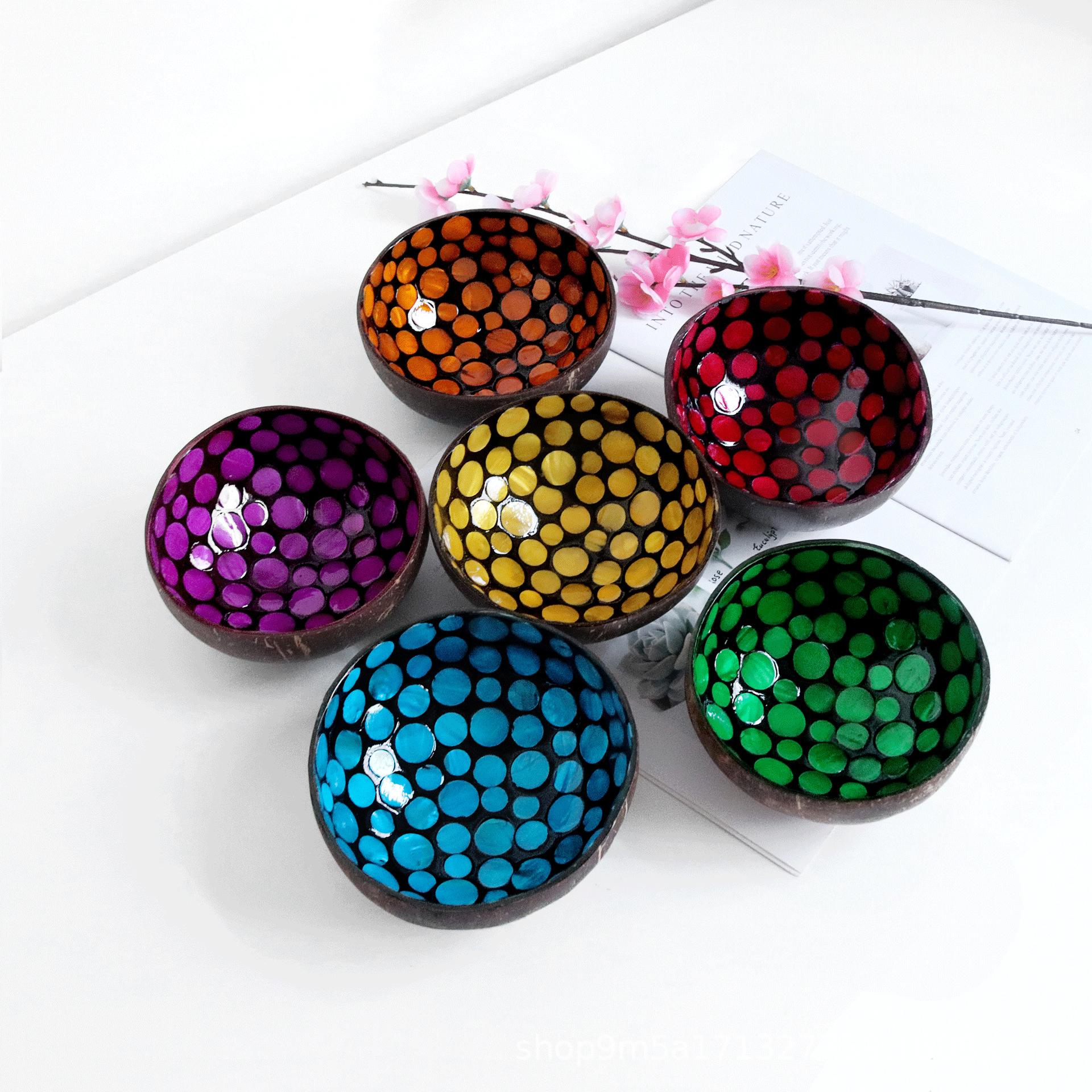Material: Coconut shellStyle: SimpleFeatures: HandmadeColour: red, yellow, green, purple, blue, orange