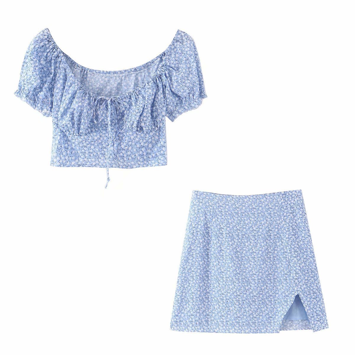 Women's cotton and linen blue flower suit