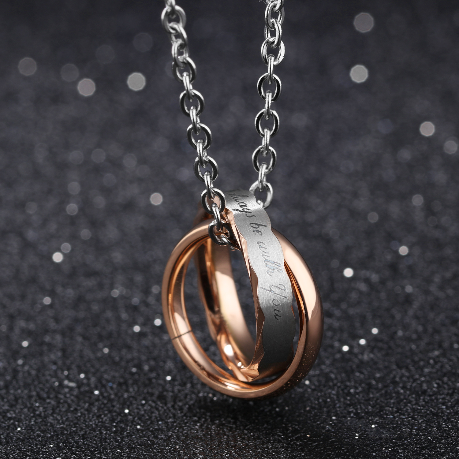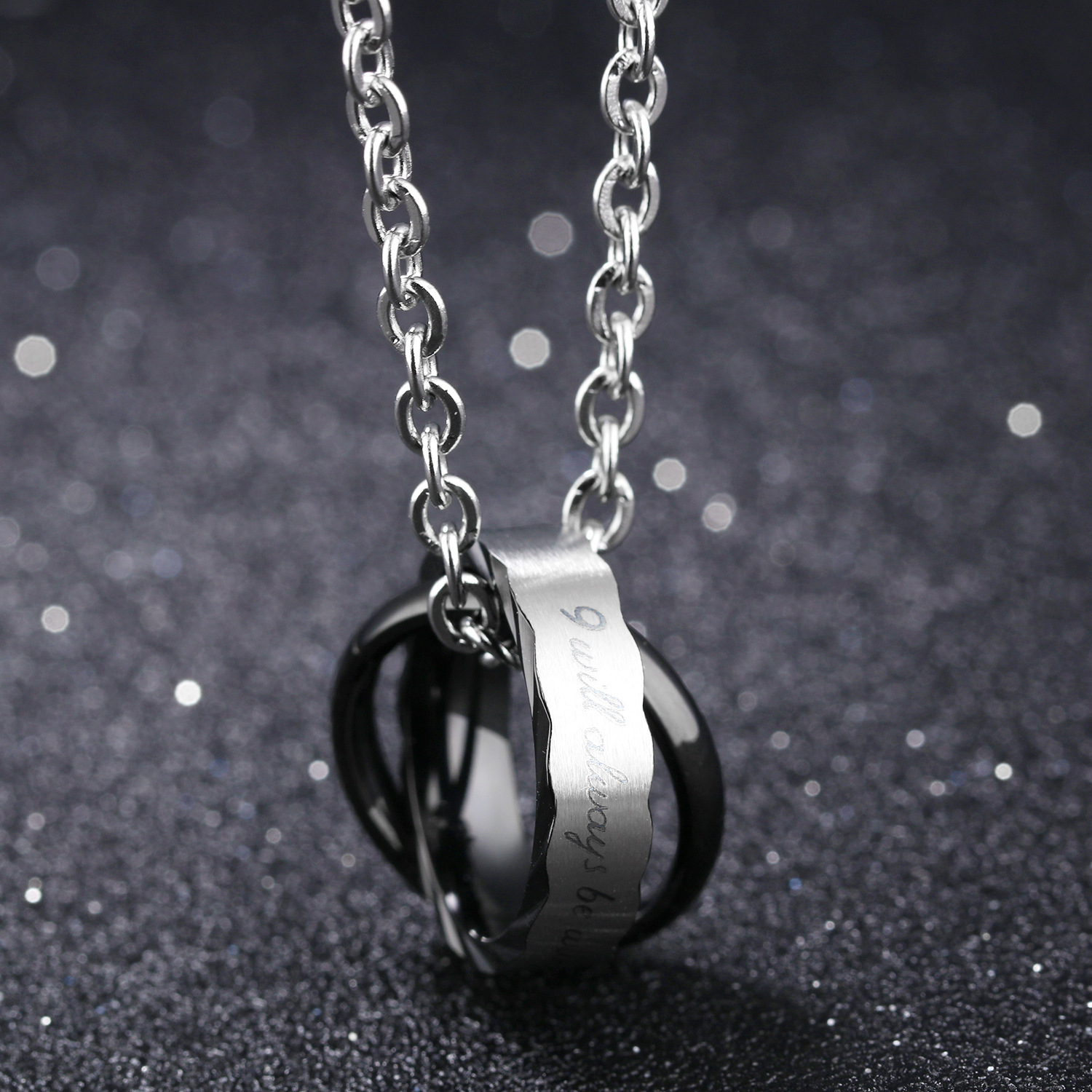 Material: titanium steelTreatment process: electroplatingType: NecklaceStyle: Couple stylePendant material: titanium steelCircumference: 51cm (inclusive)-80cm (inclusive)Color: black, rose gold