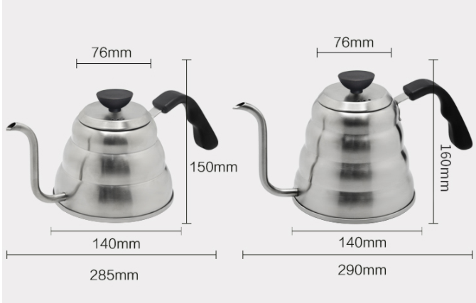 Product information:Material: 304 stainless steelCapacity: 1L-1.2LSurface treatment: Sanding treatmentPurpose: Hand-brewed drip coffee, tea brewingSpecification: 1L 285*140*150MM , 1.2L 290*140*160MM