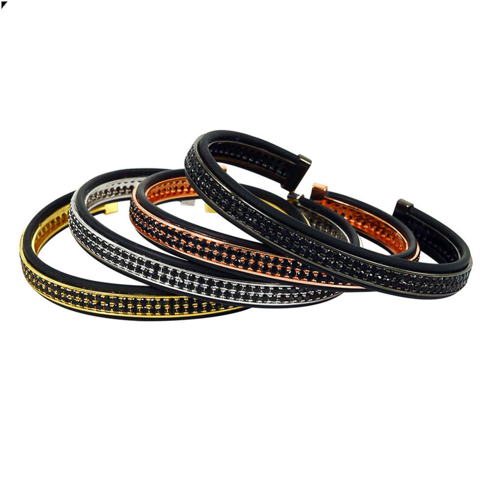 Famous Brand Men Bangle Leather Bracelet with Double Lines Zircon Open Cuff Adjustable for Women Fashion Jewelry High Quality