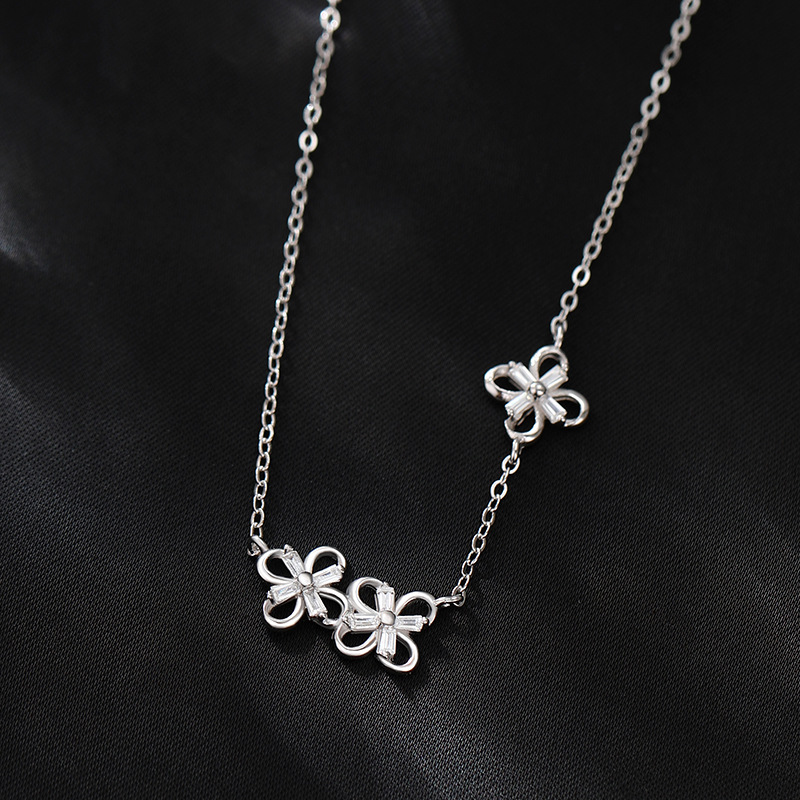 Product information:Treatment Process: Electroplating Color: Petal clover necklace Material: Silver Applicable population: Female Shape: Leaves Size: Double Flower: height 8.7mm width mm single flower: height 5mm width 8.2mm