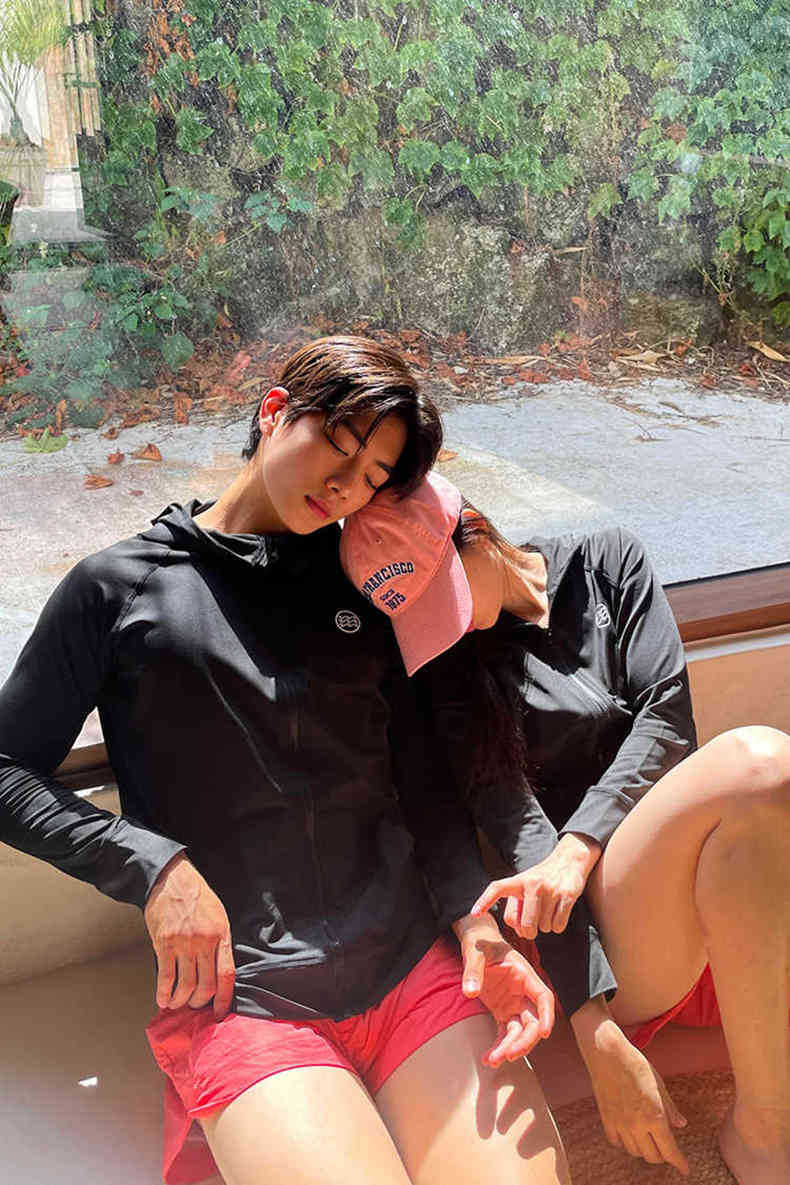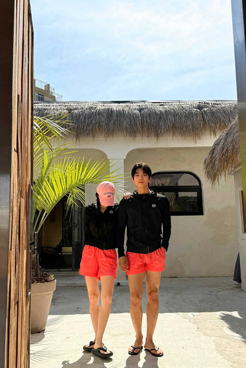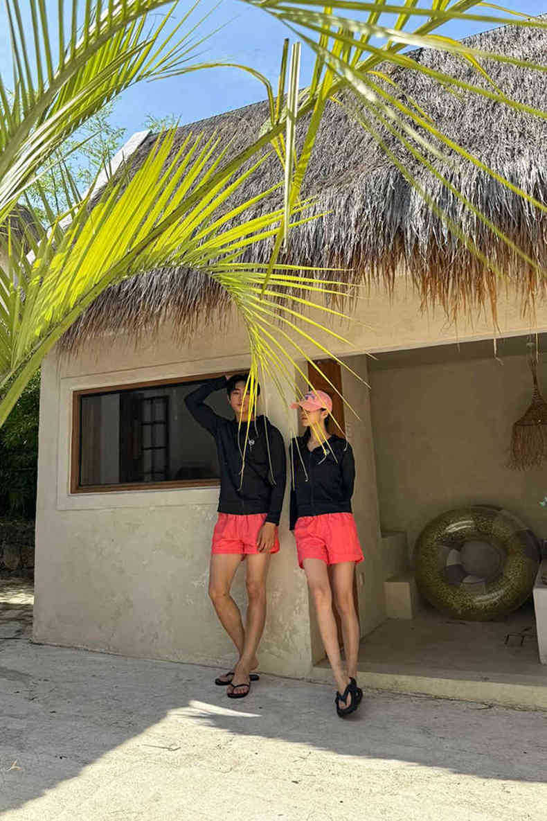 Color: Black Orange women's (three-piece set), mens' black orange two-piece set