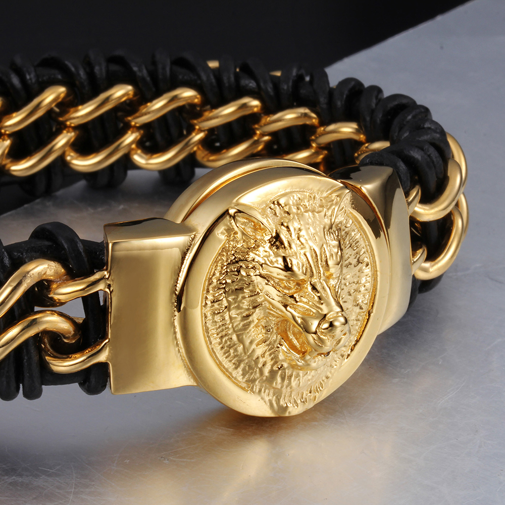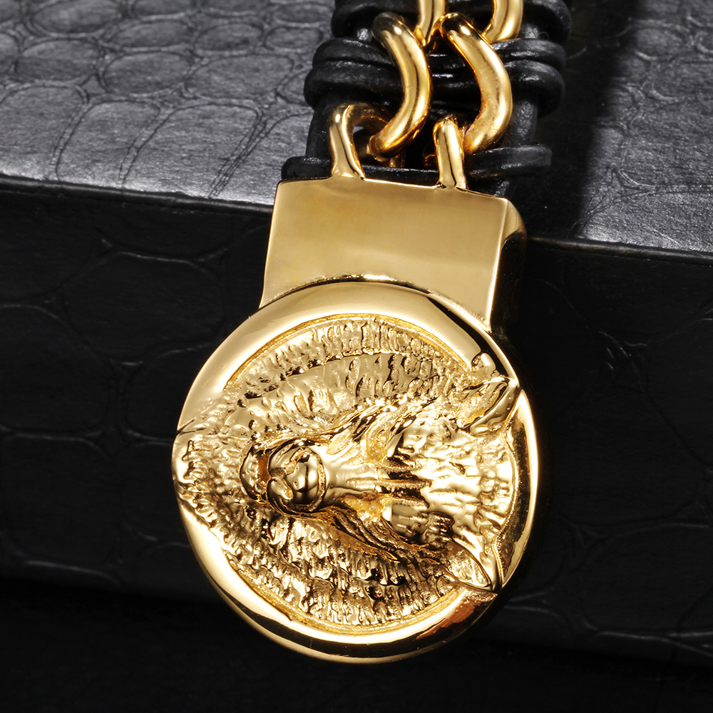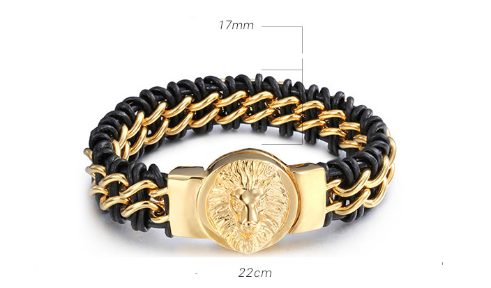 Titanium steel men's lion head gold-plated bracelet