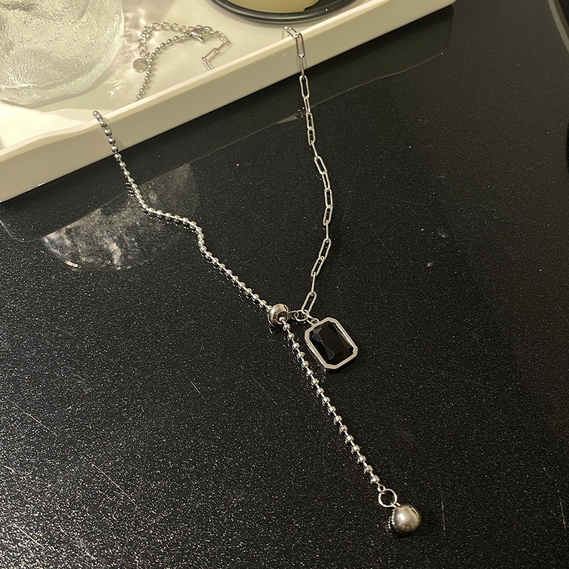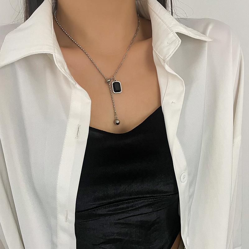 Color: Black Square necklace full body titanium steel