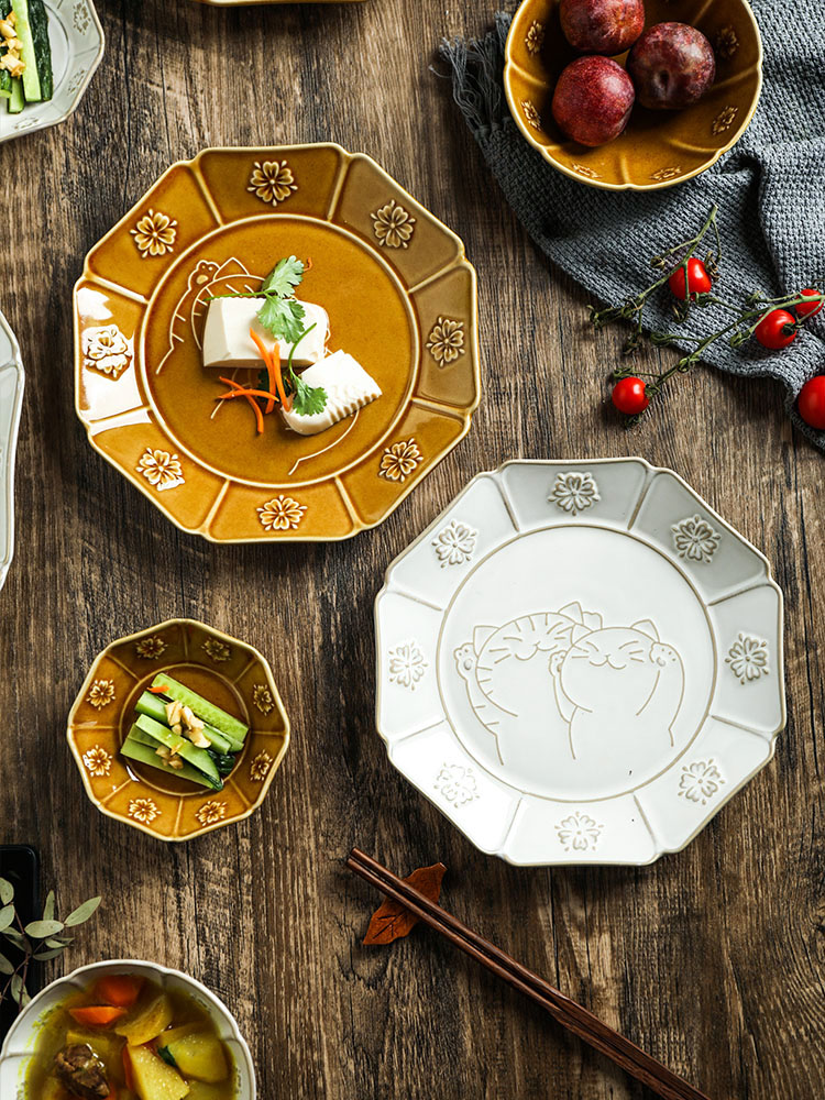 Lucky cat ceramic embossed tableware*1