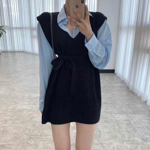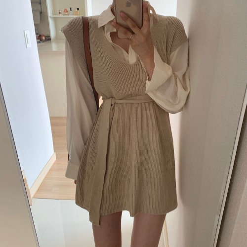 Style: Korean stylepattern: plainStyle: skirt suitTop style: shirtTop sleeve length: long sleeveSkirt length: short skirtPopular elements: stitchingCraft: Collage/Stitching