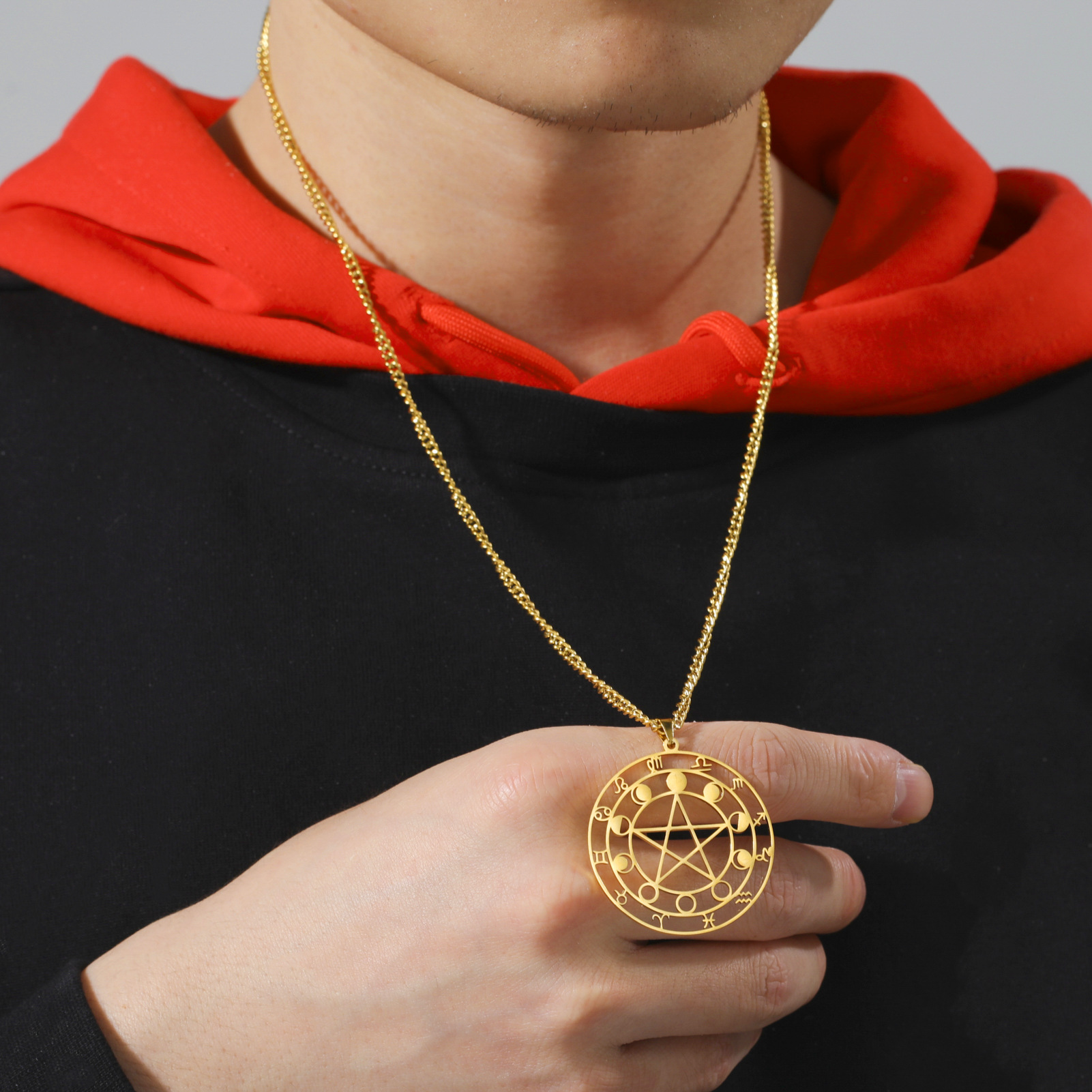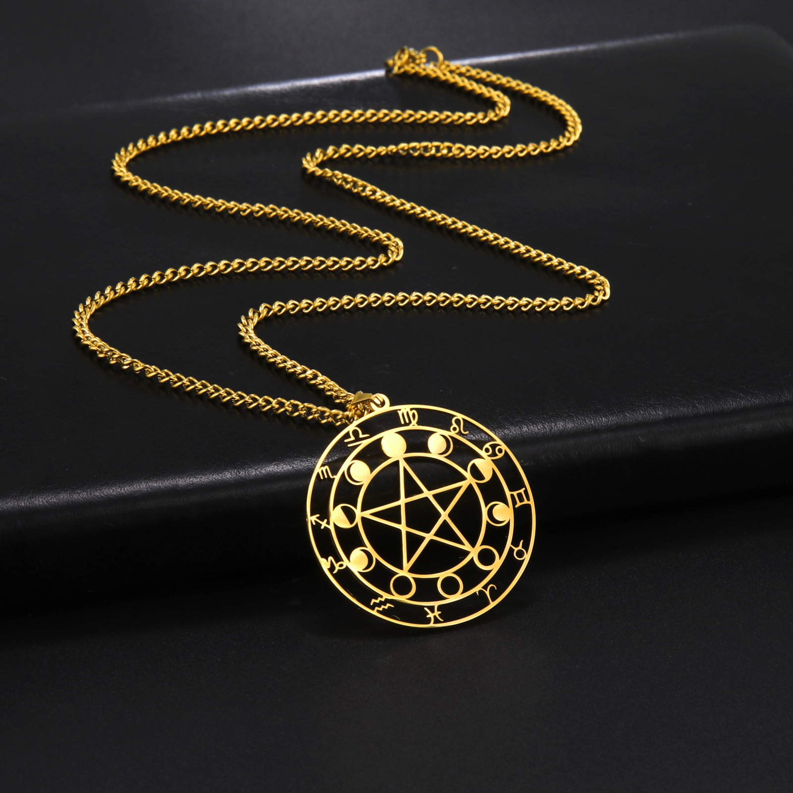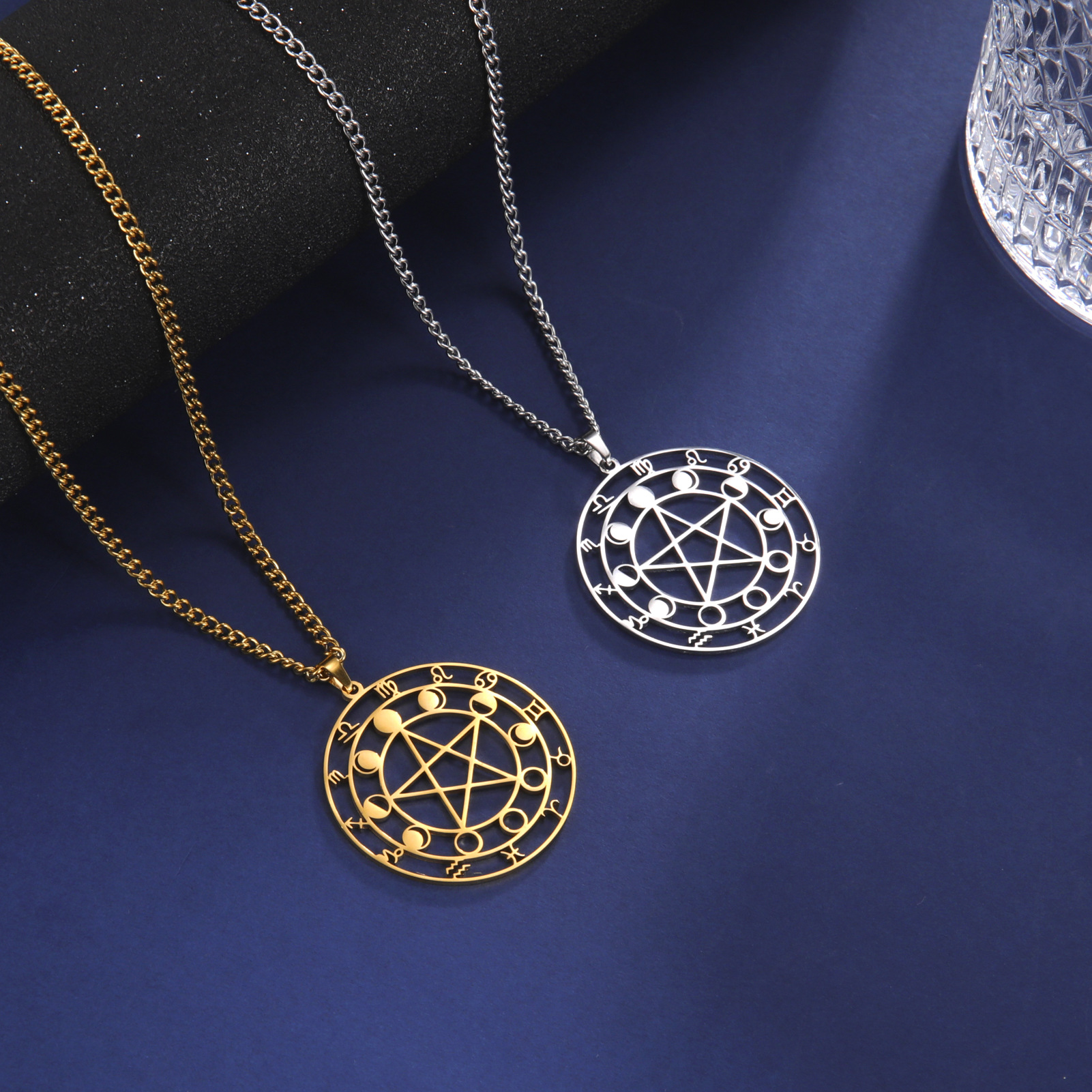 Color: gold pentagram constellation, steel pentagram constellation, gold hexagram Moon, steel hexagram Moon, gold pentagram branch, steel pentagram branch, gold symbol pattern Moon, steel symbol pattern Moon