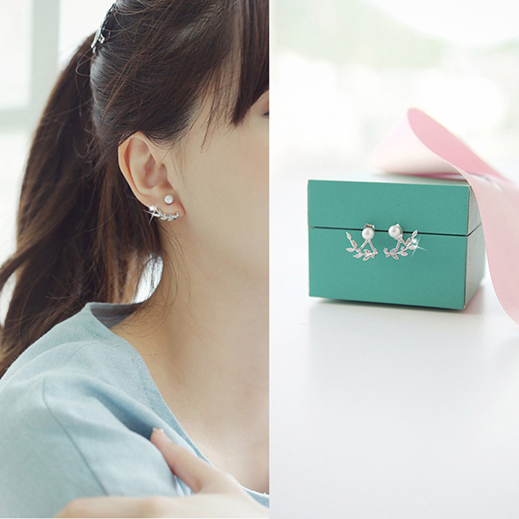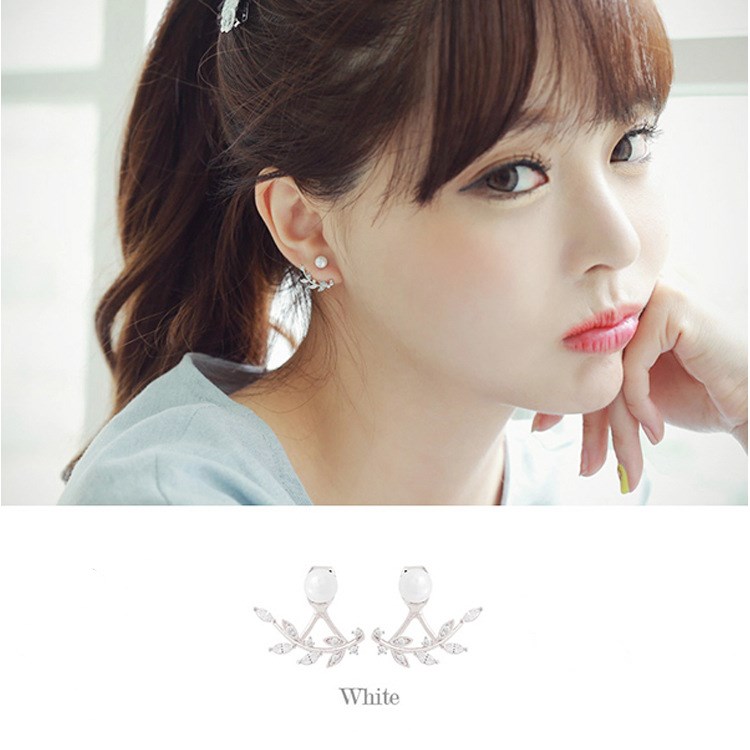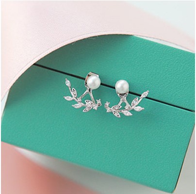 Lovely Sweet Simple Leaf Pearl Zircon Trendy Earrings
