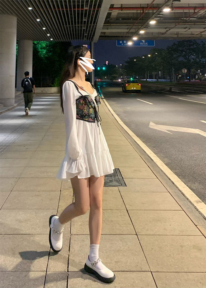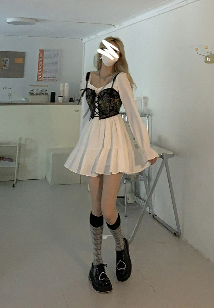 1*Long-sleeved little white dress
