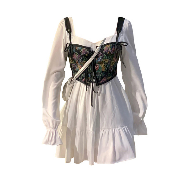 Color: white short skirt, black suspenders, white long skirt