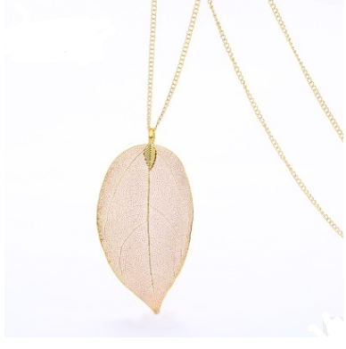 2021 new European Gold Leaf Pendant Long sweater chain pendant natural female promotional gifts wholesale manufacturers