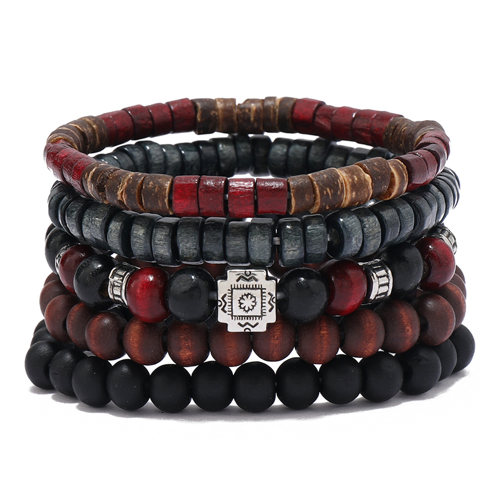 Multi-layer Filament Wooden Bead Coconut Shell Bracelet
