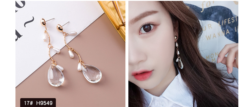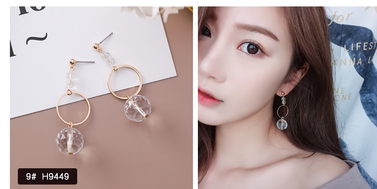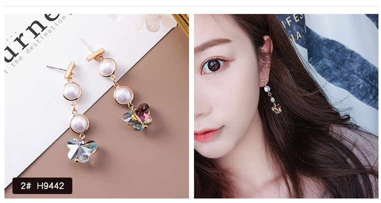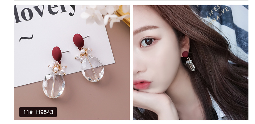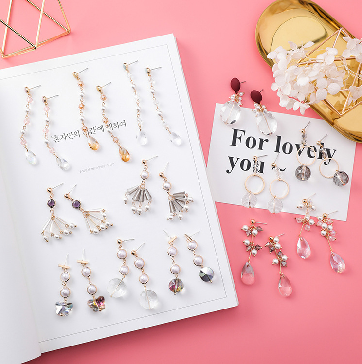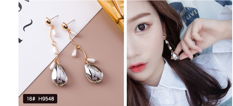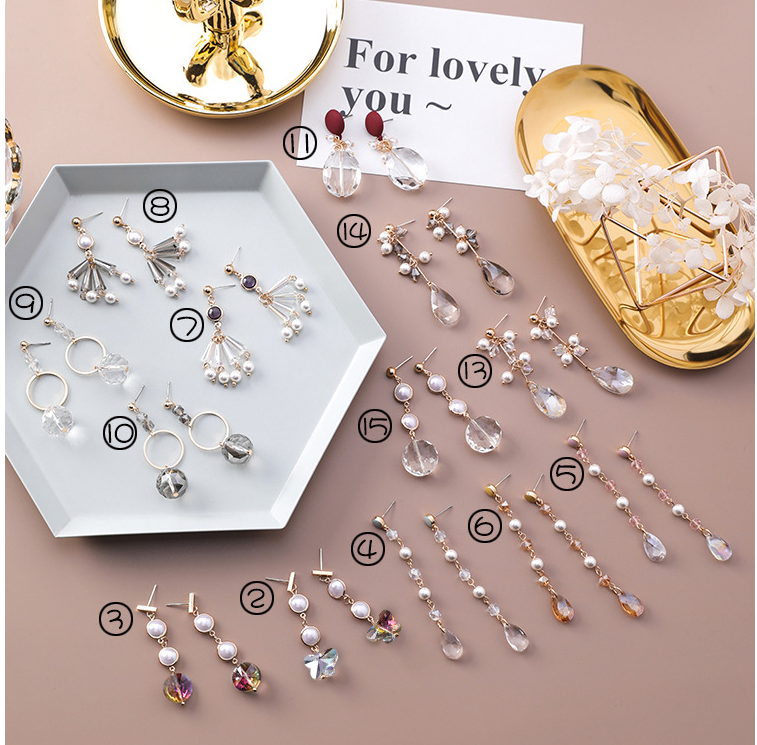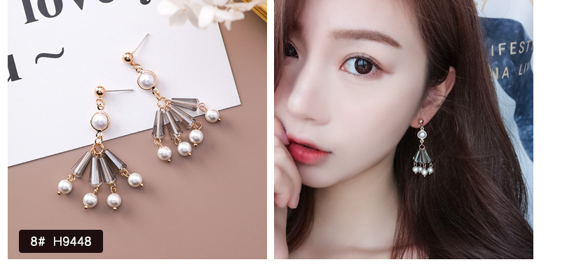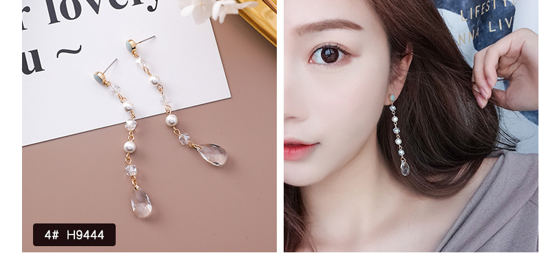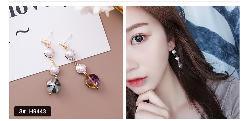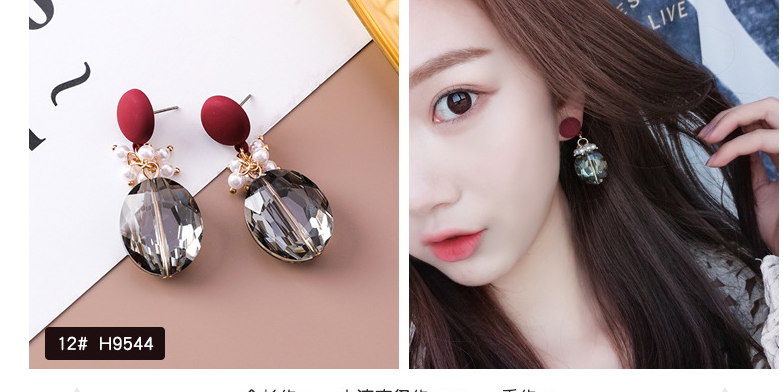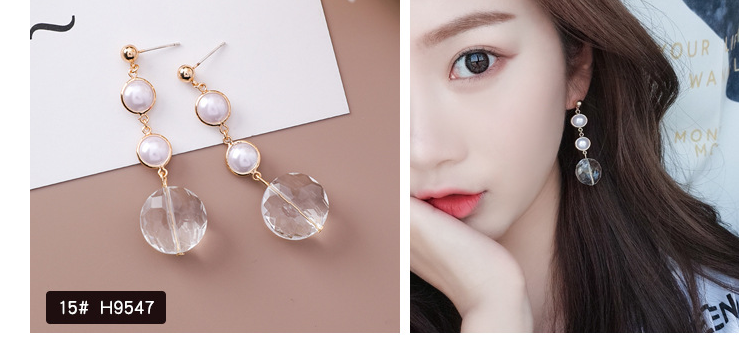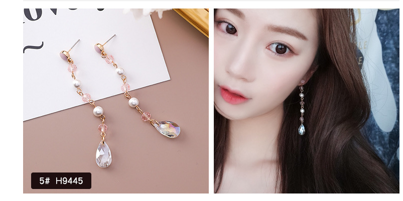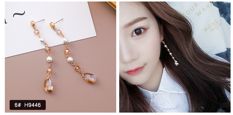 Temperament wild long cool crystal tassel earrings Korean version of the personality red pearl geometric earrings earrings