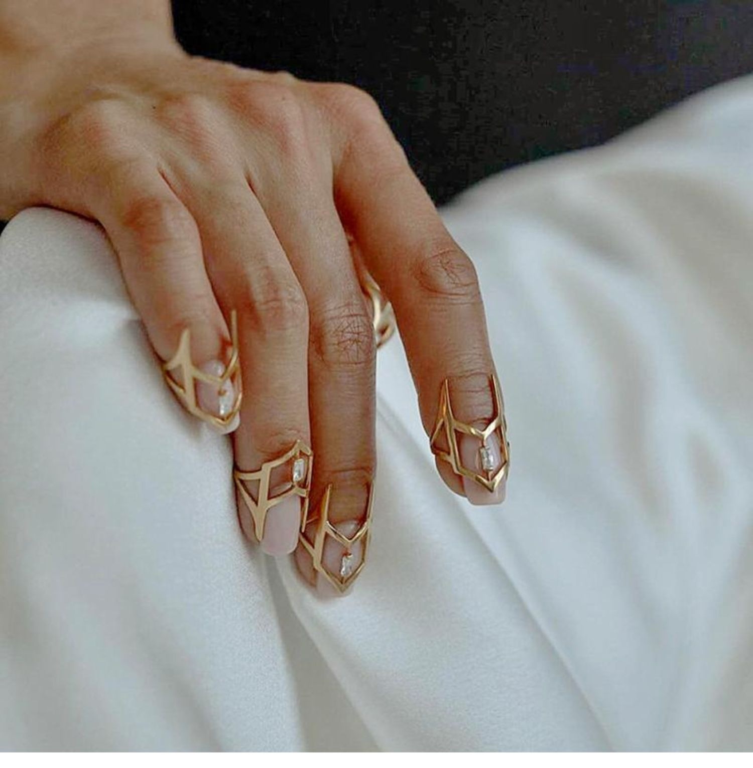 Material: brass plated with real gold + diamonds Size: Open fingertip ring can be fine-tuned